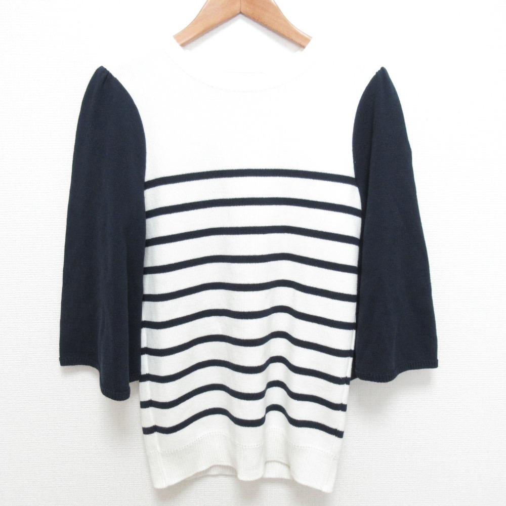 商品名:22SS BORDERS at BALCONY ボーダーズアットバルコニー FLARE SLEEVE TOP ニット トップス サイズ36 ホワイト×ネイビー
