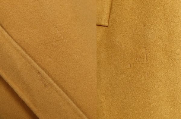Loro Piana cashmere belted coat size 40 ロロピアーナ カシミヤ ベルト付 ガウン コート <色> 画像を参考にお願いします <素材> 本体 カシミヤ100% 皮革部分 羊革 袖裏地 ポリエステル100% <サイズ> 40 <寸法> 肩幅43.5身幅45着丈408袖丈56(単位:㎝) <商品状態> 左胸に小穴、所々に虫食いがございます。多少の着用感はございますが大きな汚れなどなく着用していただけるお品です。 <備考> FAL7893、イタリア製、国内購入品。上質なカシミヤを使用したベルト付きガウンコートです。落ちついたカラーリングのコートに袖先ボタン・ベルトバックルにはレザーがあしらわれています。 ■支払方法 YAHOOかんたん決済で落札価格+送料をお支払いください。 ■発送詳細 佐川急便、送料全国一律900円