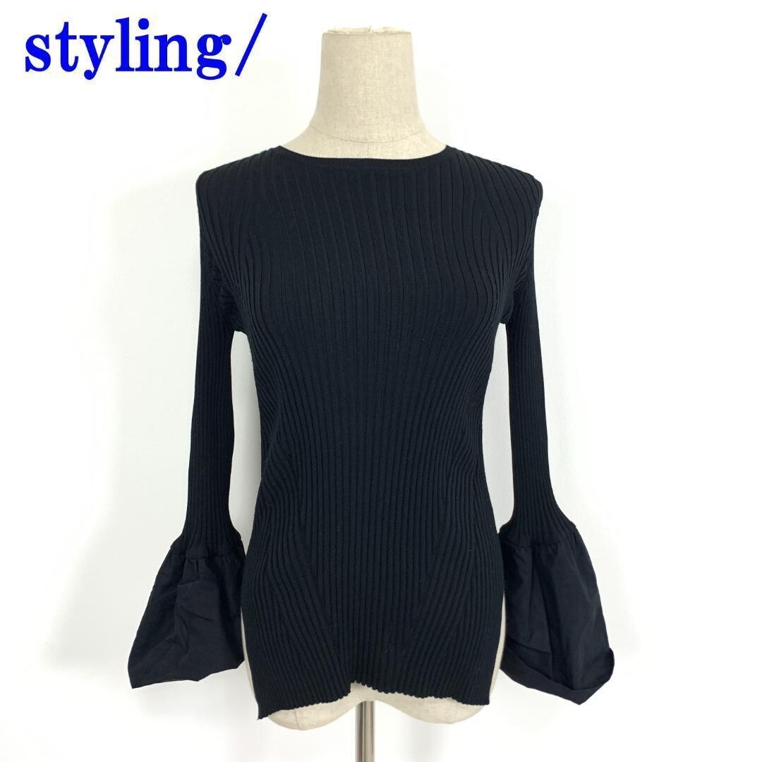 スタイリング 長袖ニット 黒 ポリエステル レーヨン styling/ 袖広がり 袖フレア リブニットナイロン F C3176