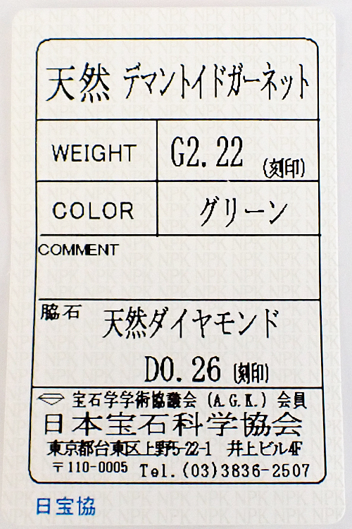 オプションサービス→鑑定書、鑑別書作成(有料)