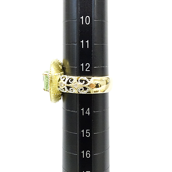商品名 デマントイドガーネット リング ダイヤモンド K18イエローゴールド K18ホワイトゴールド ハート ミル打ち ミルグレイン 透かし