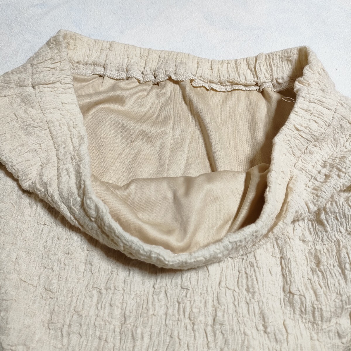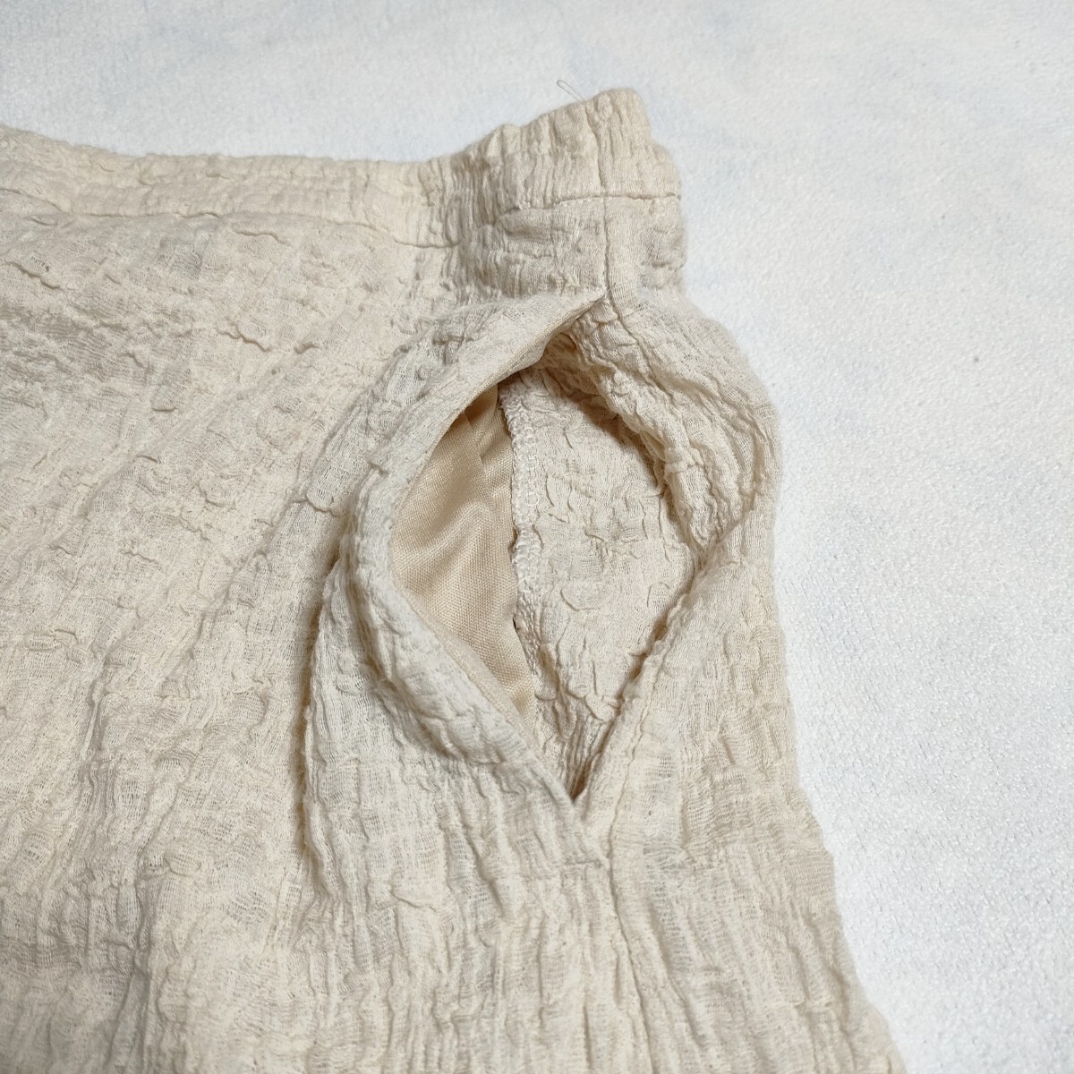 独特な凹凸感がポイントのランダムシャーリングフレアスカート。