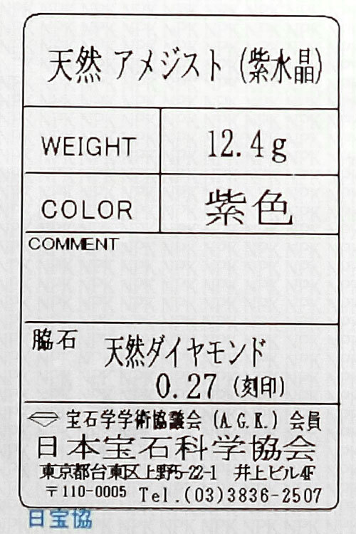 水野薫子 アメジスト ダイヤモンド K18ホワイトゴールド KAORUKO MIZUNO 作家 デザイナー 送料無料 中古 宝正 901719