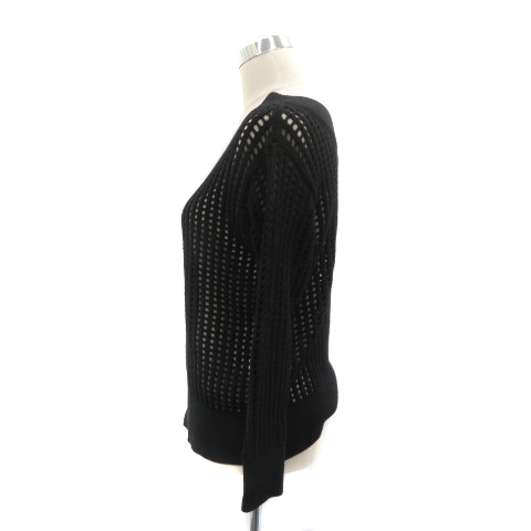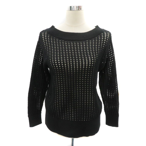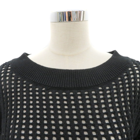 プラステ PLST ニット カットソー 長袖 2way 透かし編み M 黒 ブラック /YK31 レディース
