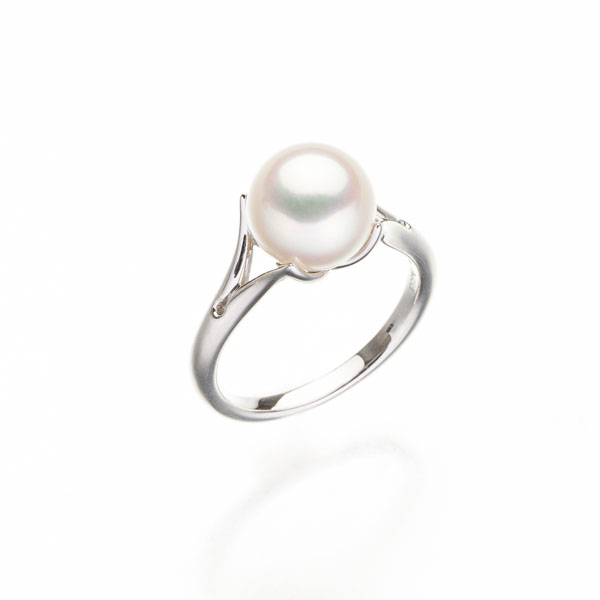 K18イエローゴールドに7.3mmのアコヤパールをあしらった、上品でシンプルなリング。