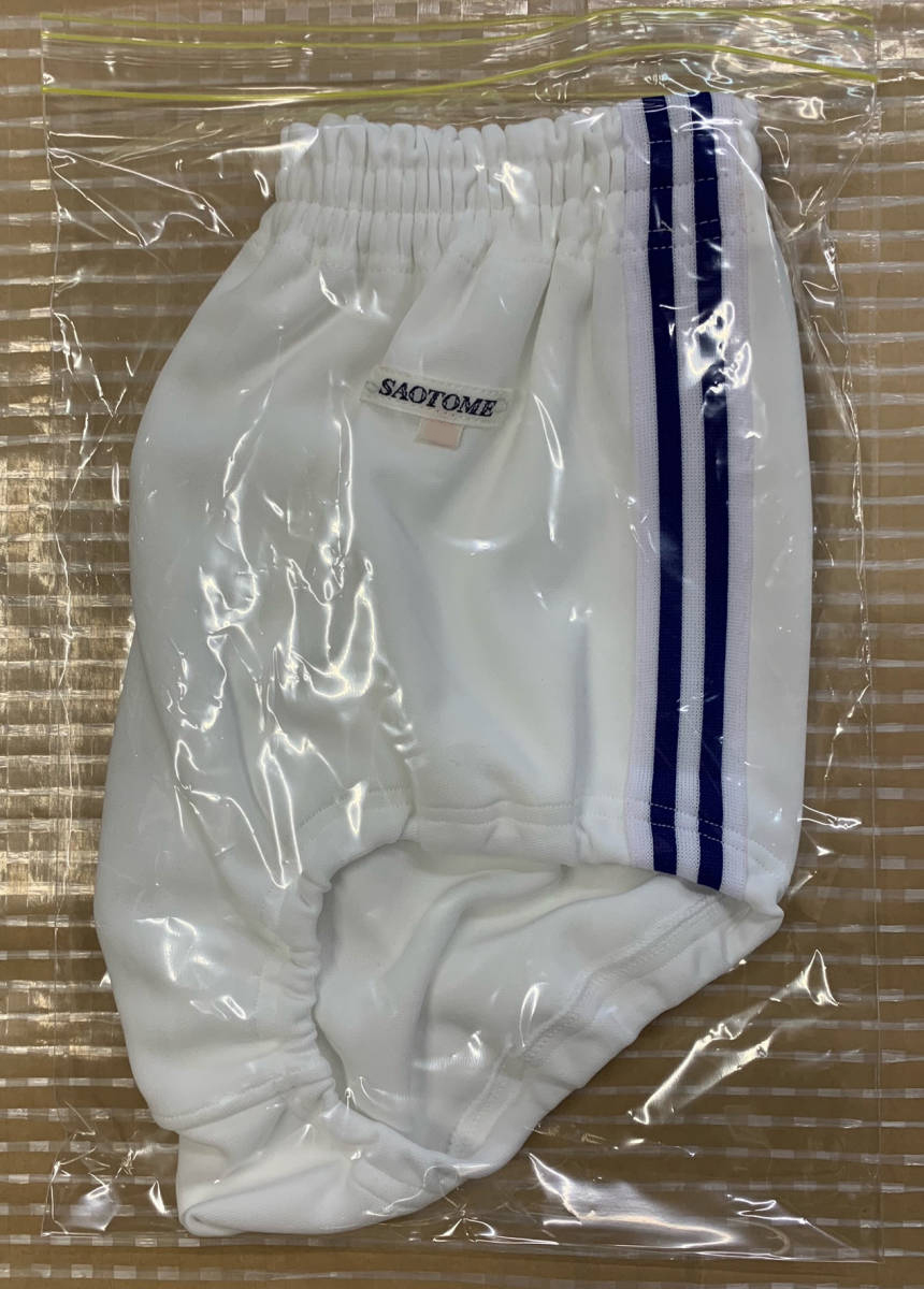 紺ライン入り白ブルマ S サイズ。(白 ポリエステル100% W-60) 弊社製造卸売りの新商品です。 |