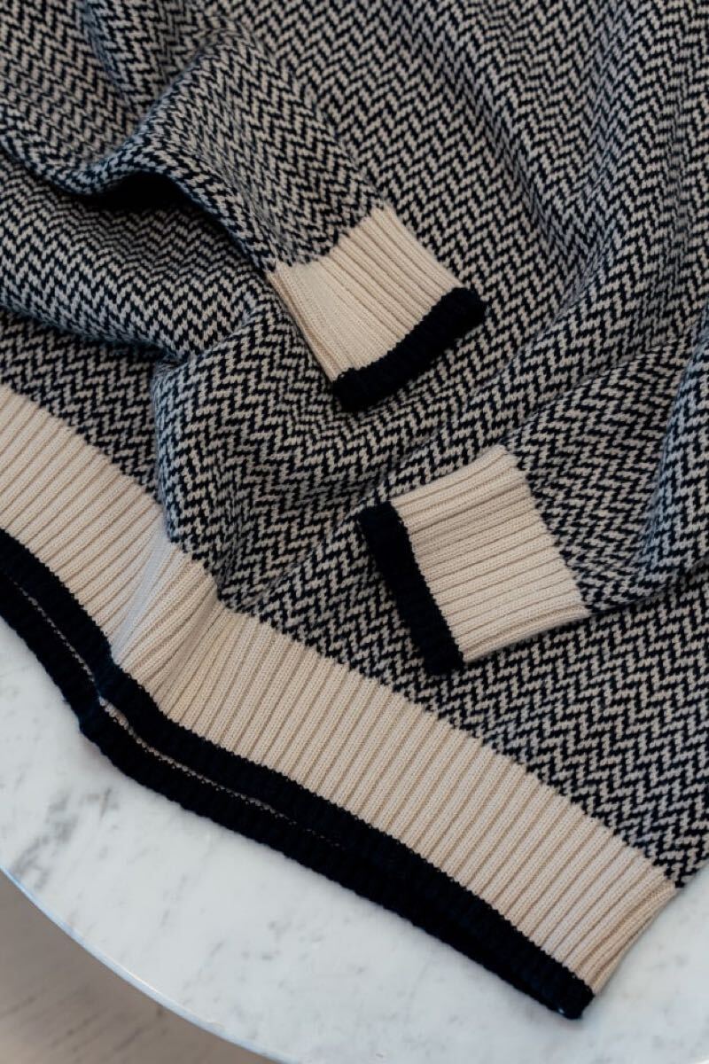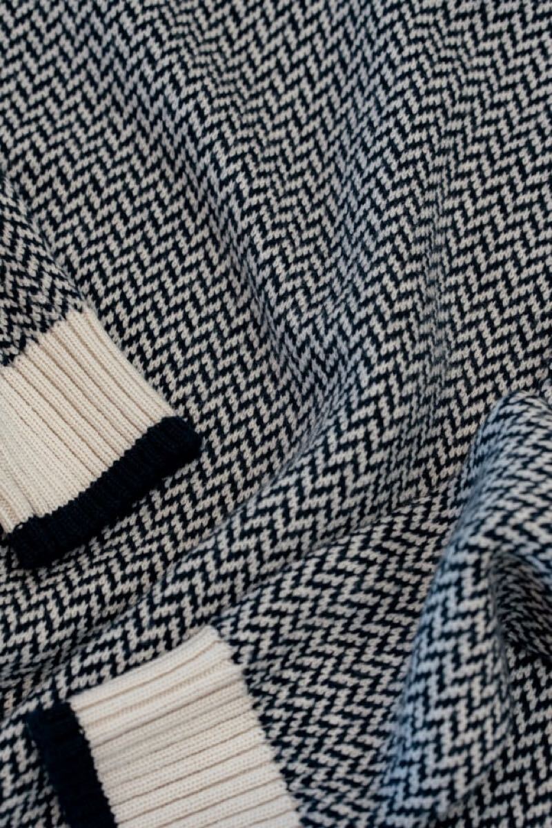 ヘリンボーン柄のボディに、ネック、袖裾のリブ部分のみ切り返しになっております。
