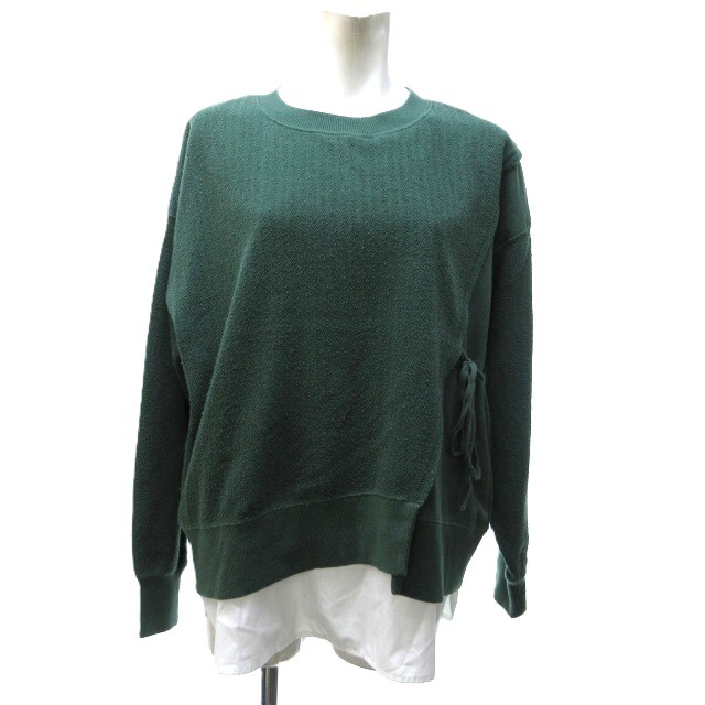 ビームスハート BEAMS HEART ヘリンボーン プルオーバードッキングカットソー 異素材切替 長袖 緑 グリーン F ■MET1