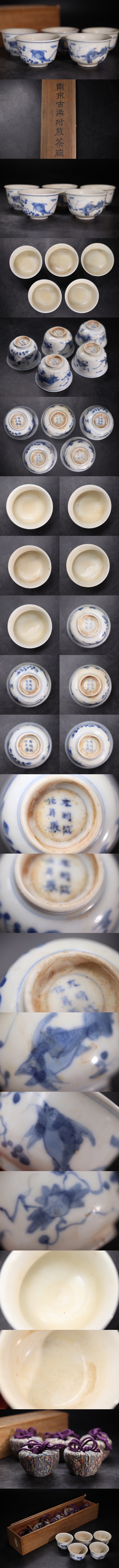 | 大明成化年製 底款 「 南京 古染付 煎茶碗 」 仕覆・木箱付 / 明 成化 中国美術 茶器 煎茶道具 .G2194 |