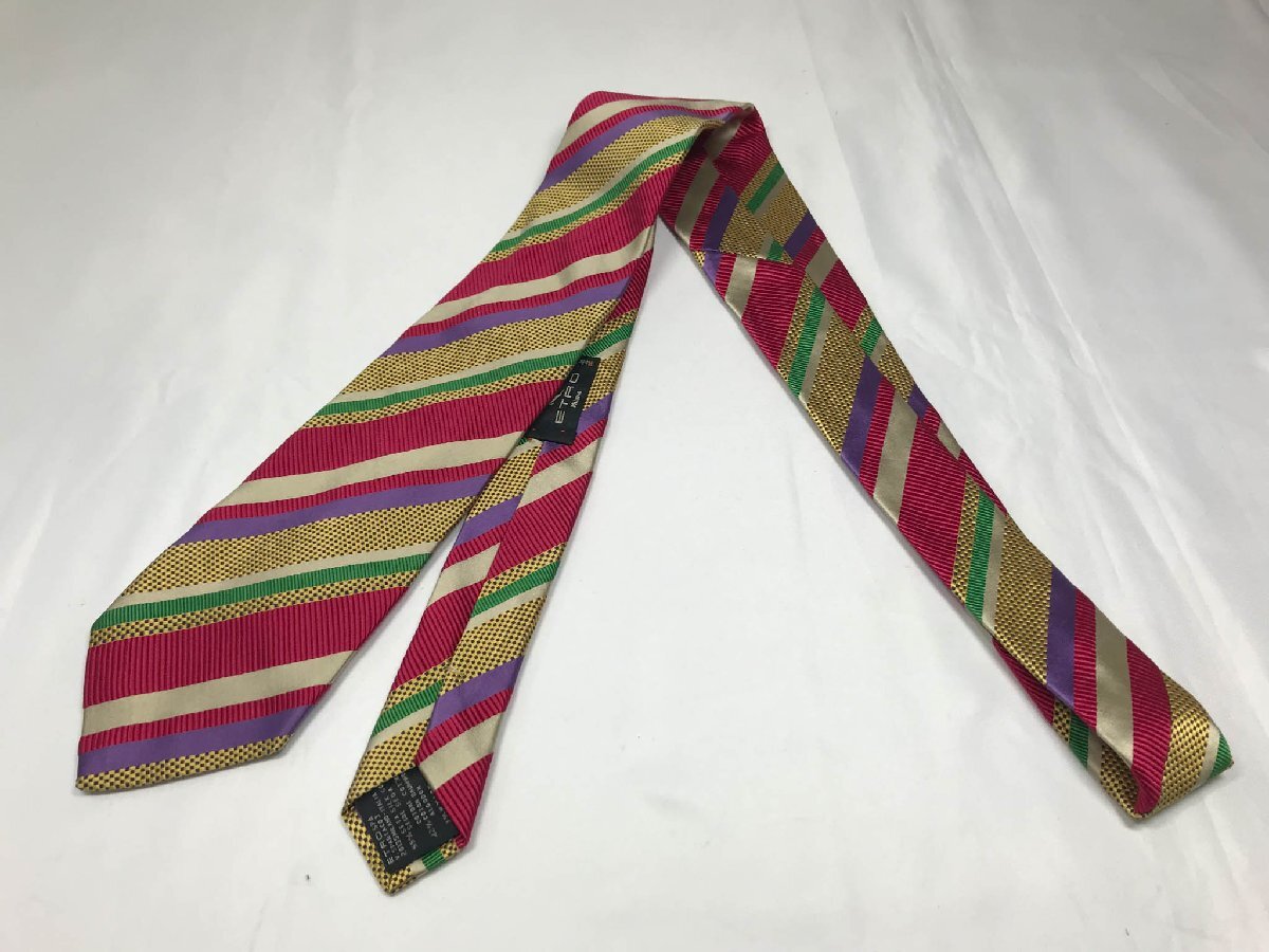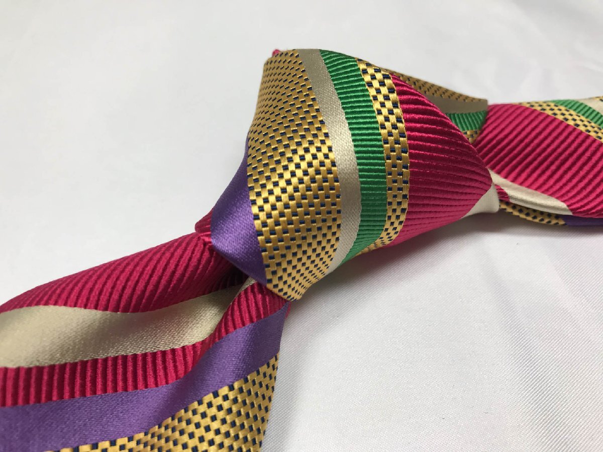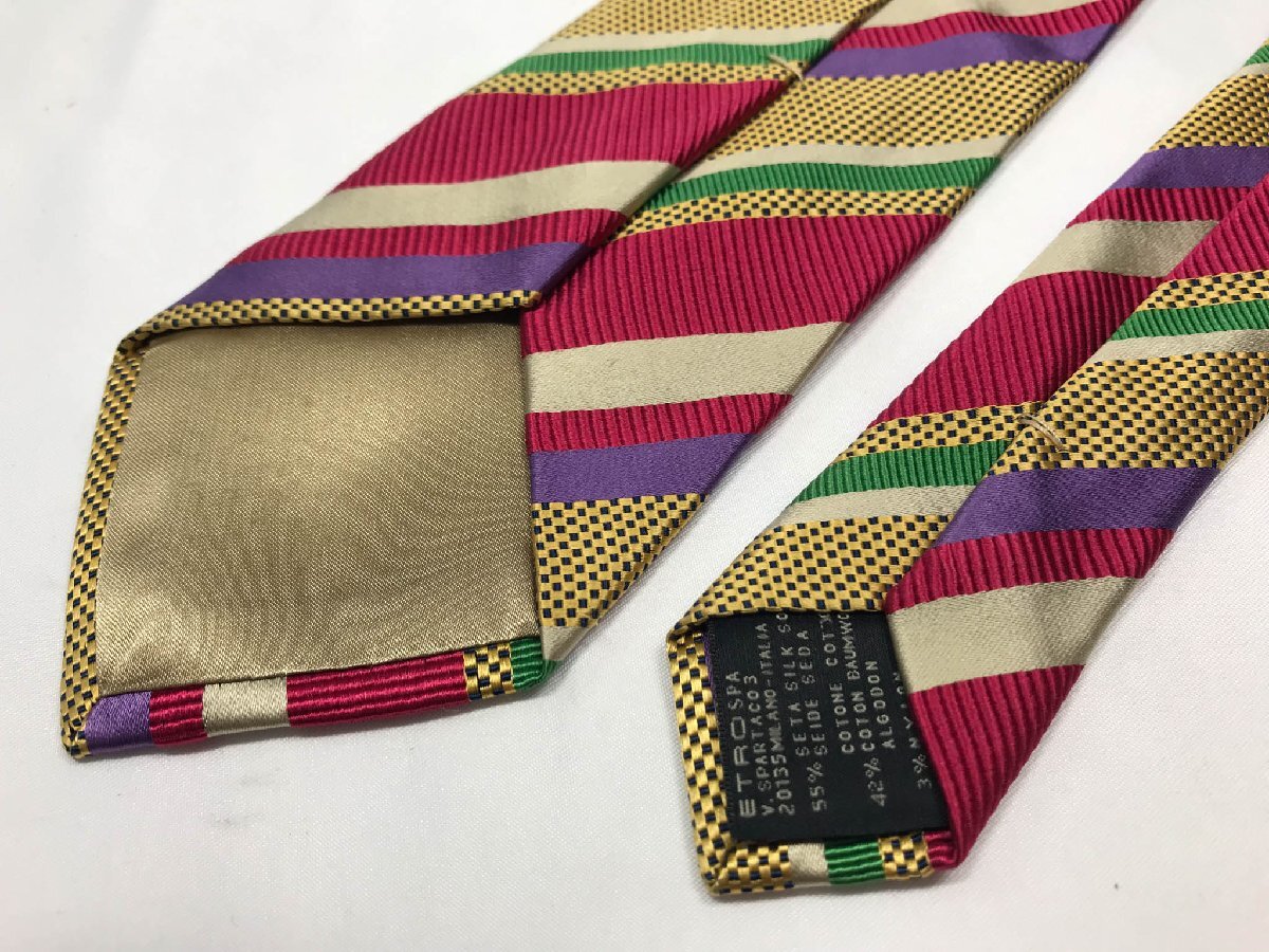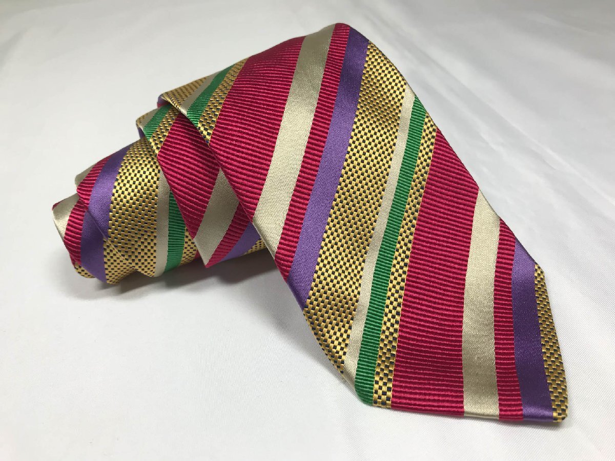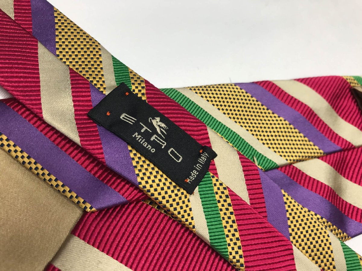 超美品 【エトロ ETRO】 レジメン柄 シルクネクタイ (メンズ) 存在感◎ カラフル イタリア製 ◇3MM8372◇