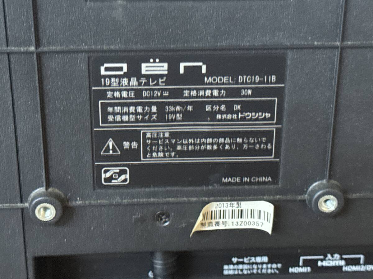 ◆oen 19型 液晶テレビ DTC19-11B ドウシシャ