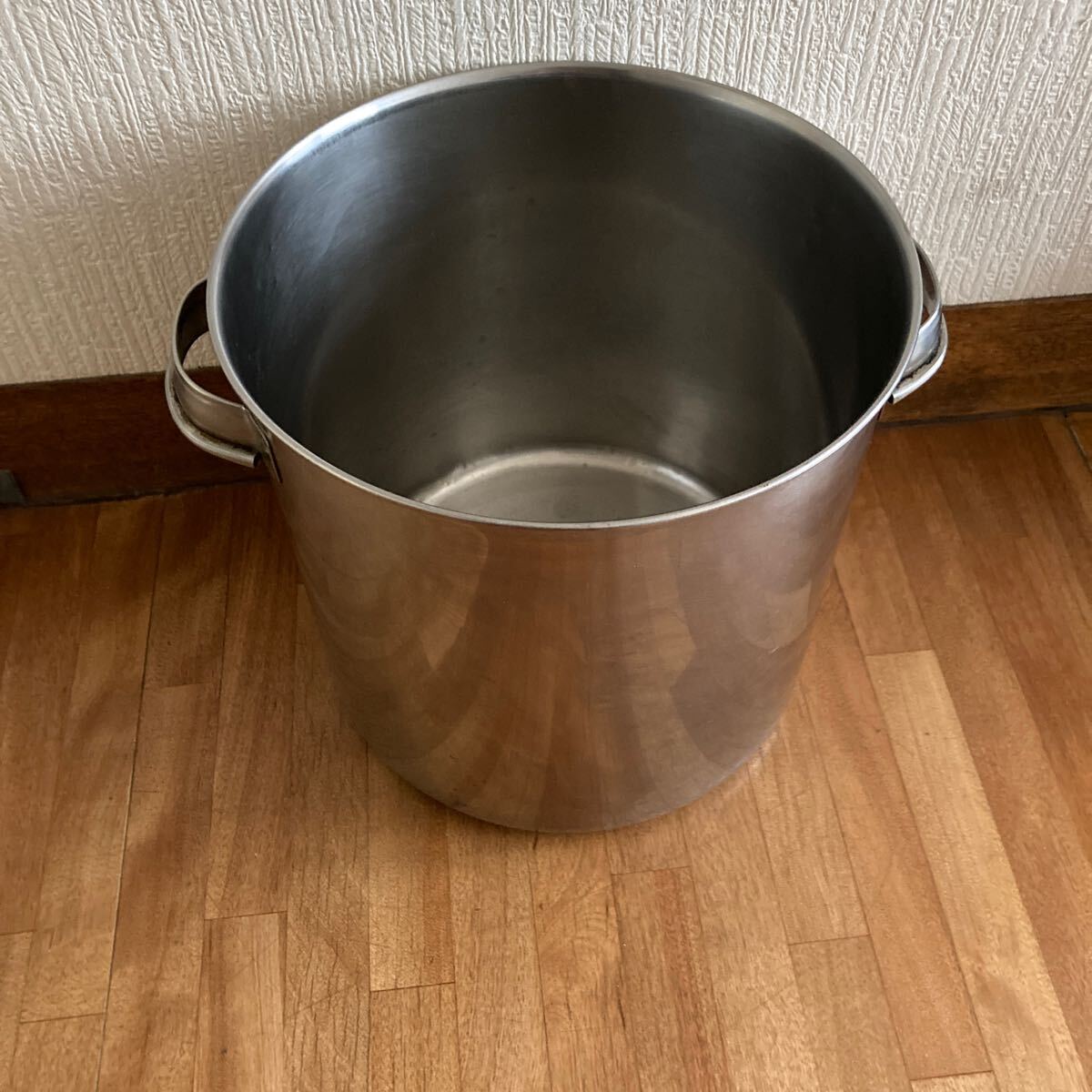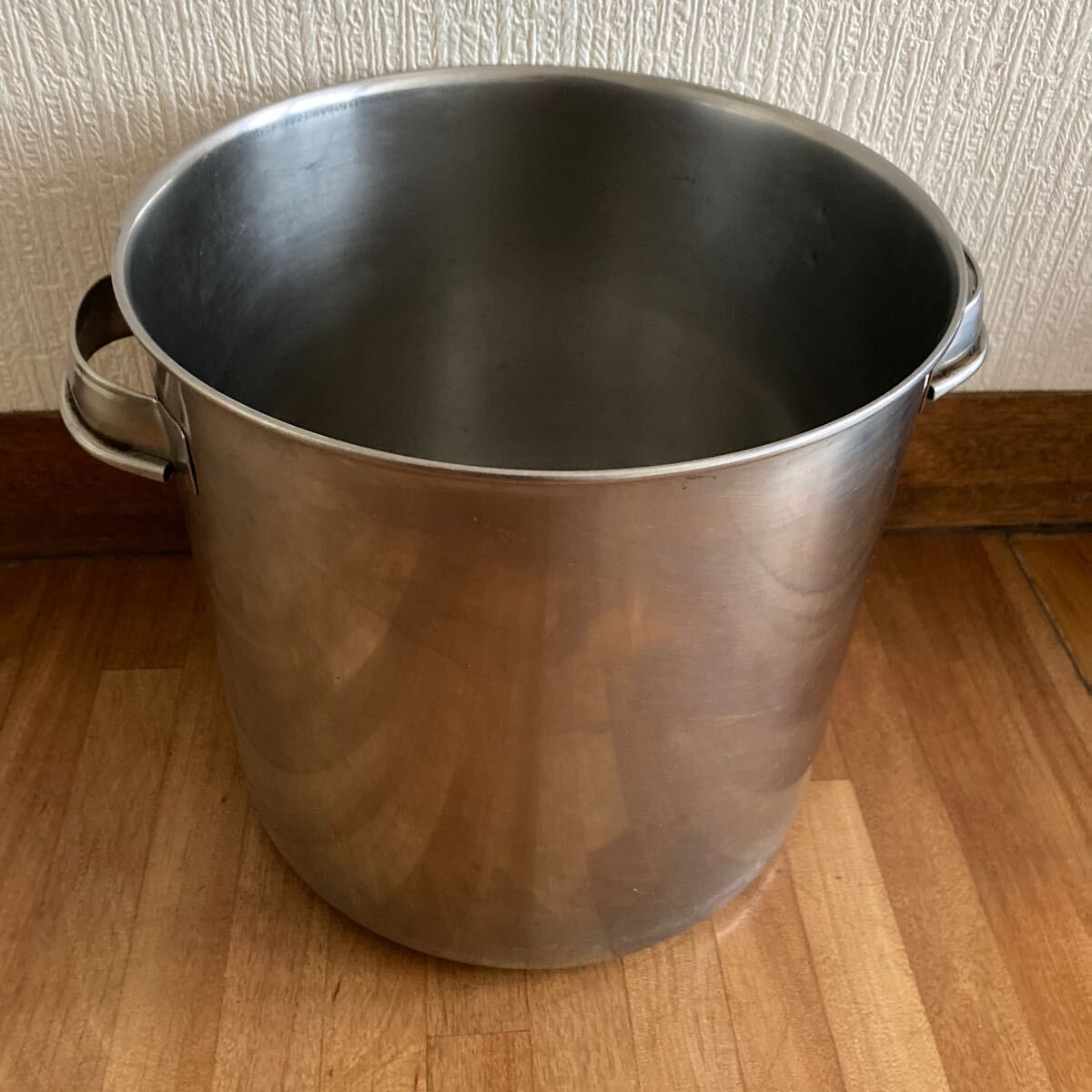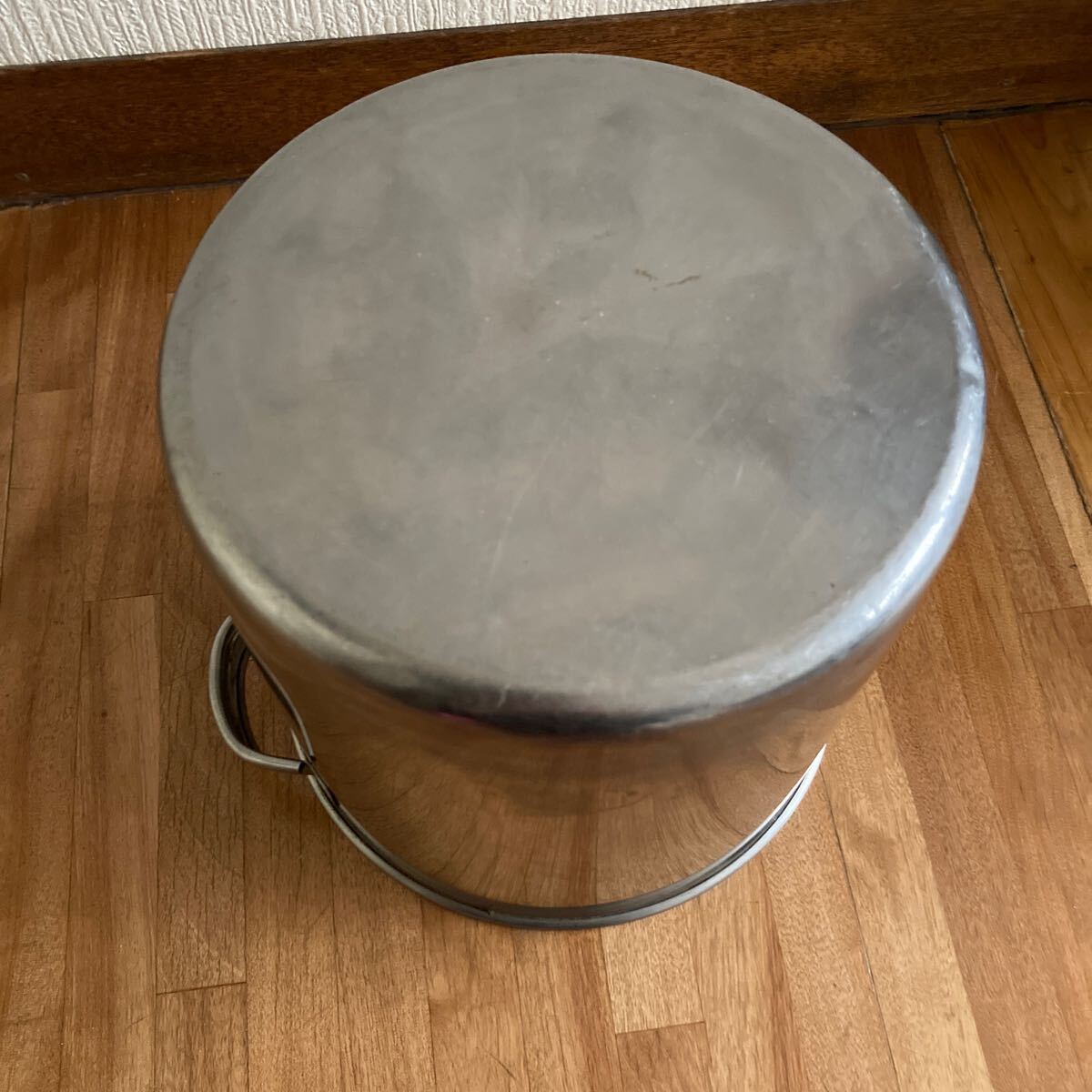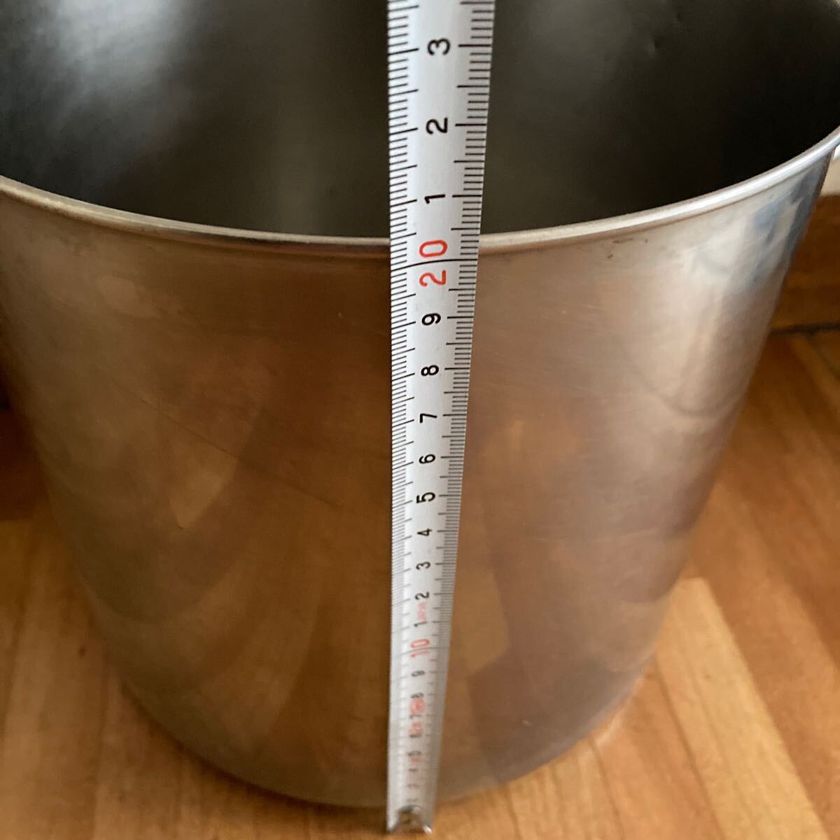 直径21センチ、使用により小傷や汚れは多少ありますがステンレスですので磨けば綺麗になり、へこみや錆などは無く綺麗な方ではないかと思います。さっと拭いて発送致します、中古品となります事ご了承下さい。80サイズ