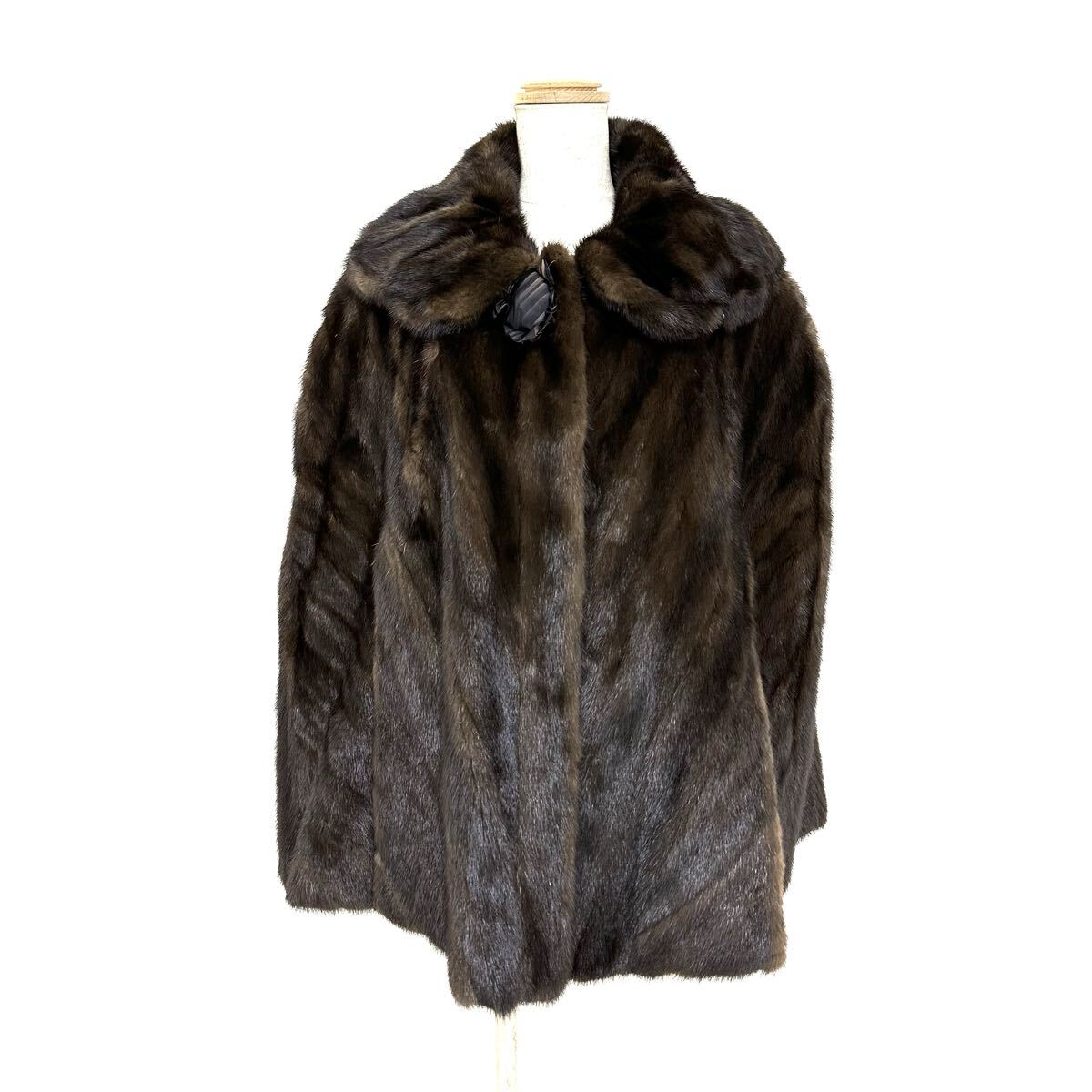 【貂商】h5710 ミンク ポンチョ マンケープ デザインコート セミロング ブラウン系 ミンクコート 貂皮 mink身丈 約65cm
