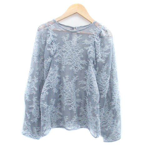 スナイデル SNIDEL ブラウス カットソー ラウンドネック 長袖 総レース F 水色 ライトブルー /HO25 レディース