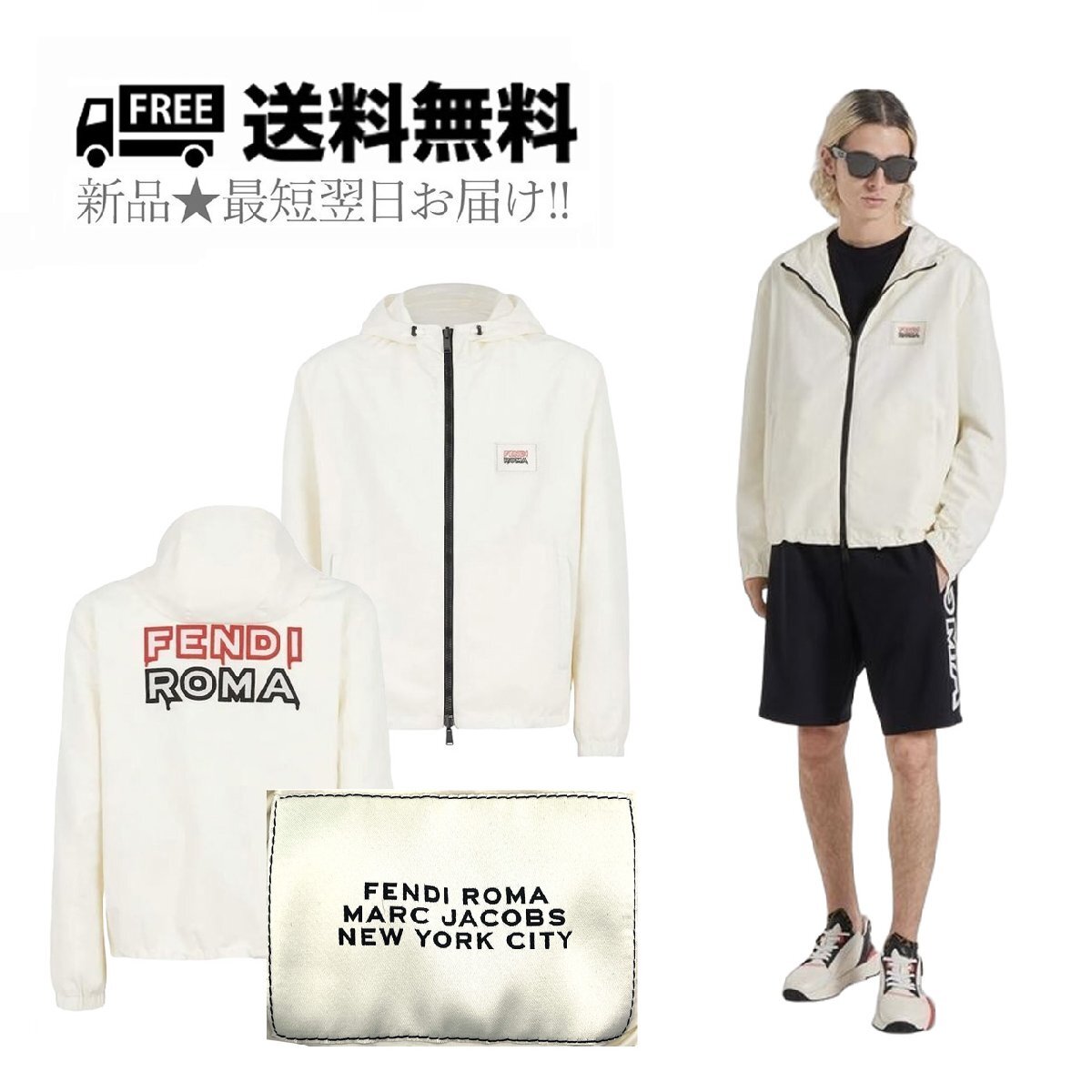 K466-46.. FENDI × MARC JACOBS フェンディ マークジェイコブズ ウィンドブレーカー コラボ ジャケット ロゴ イタリア製 FW1088ANG5F0RQ0 ★ オフホワイト