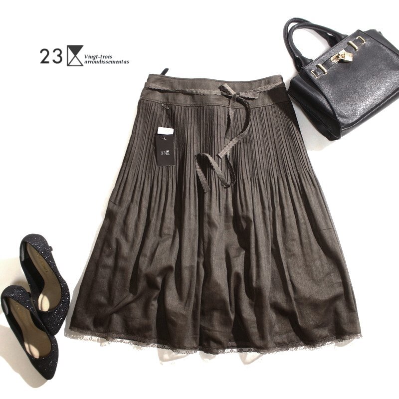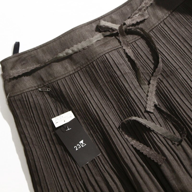 新品 未使用 23区 株) オンワード樫山 春 夏 オーガンジー ほんのり艶 シワ加工 フレアスカート 11号 40 ダークブラウン スカート オフィス