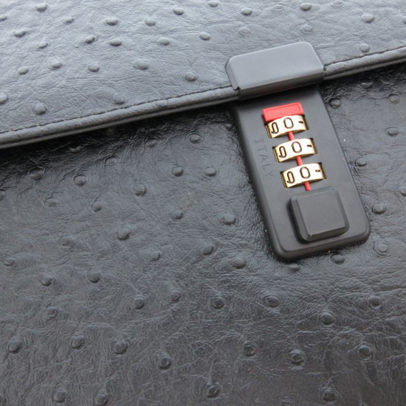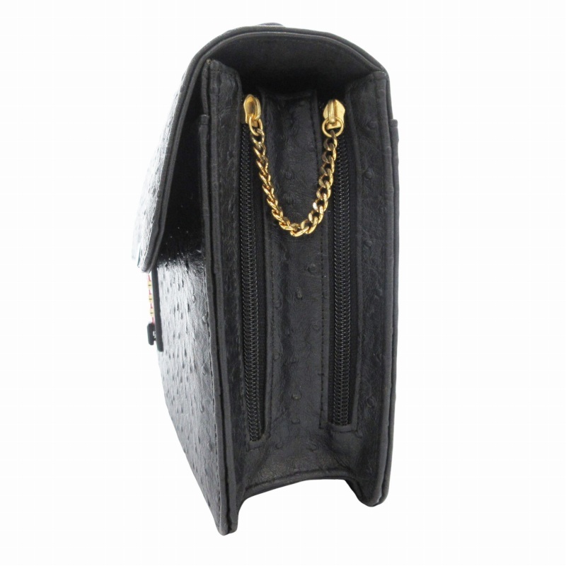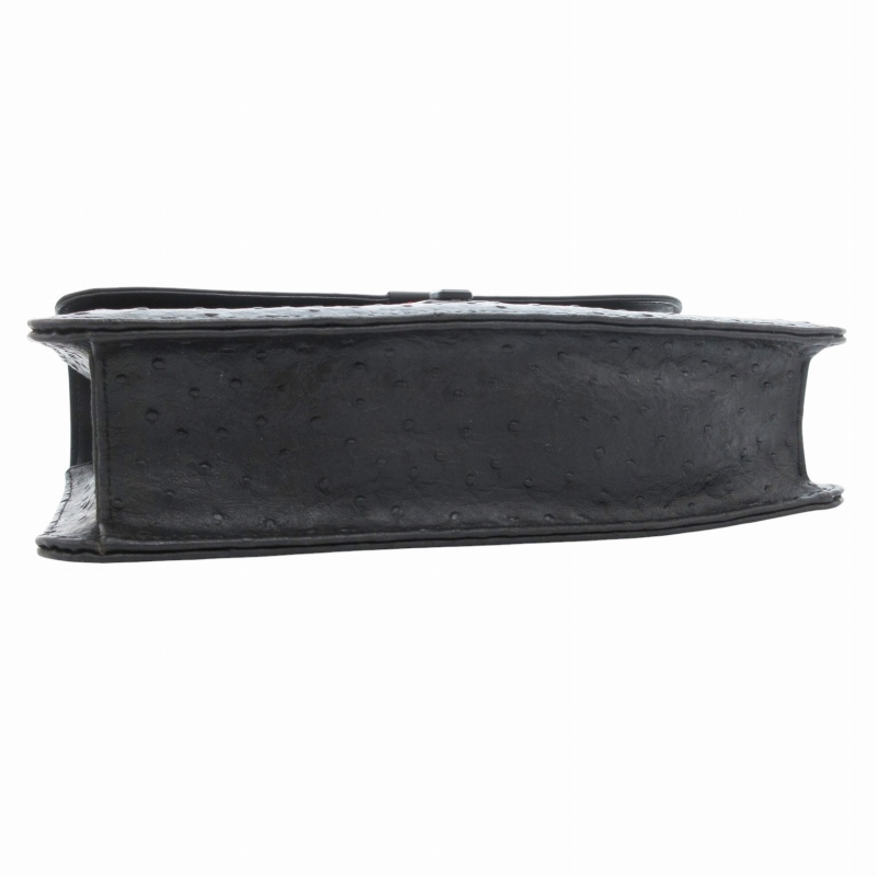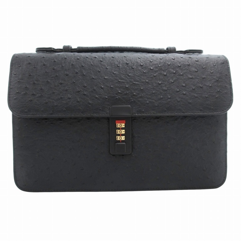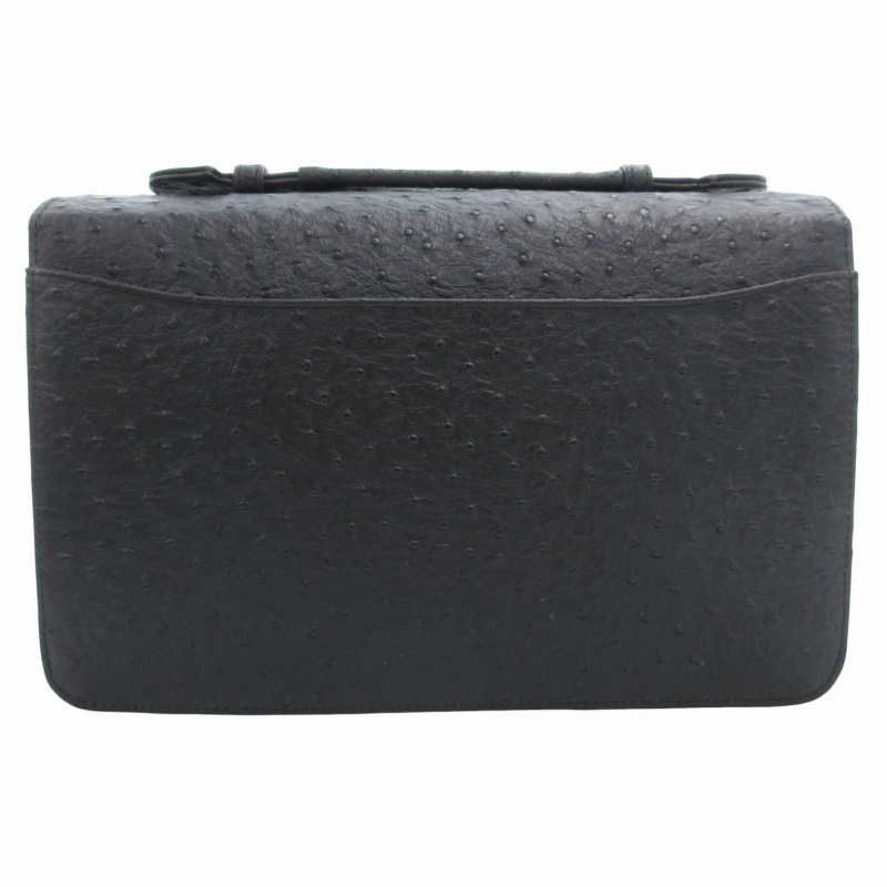 ノーブランド クラッチバッグ セカンド ダイヤルキー オーストリッチ レザー 黒 ブラック /GV ■GY99 レディース