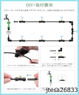 ■送料無料■ミストシャワー 屋外 直角アダプター付き 自動散水セット ホース 灌漑システム 噴霧ノズル 散水ノズル 芝生 水やり