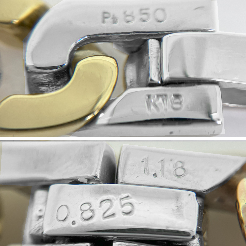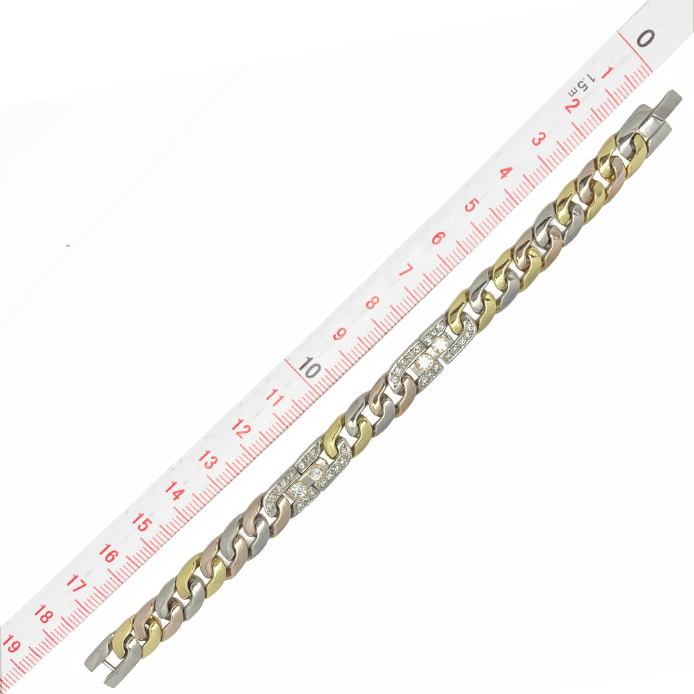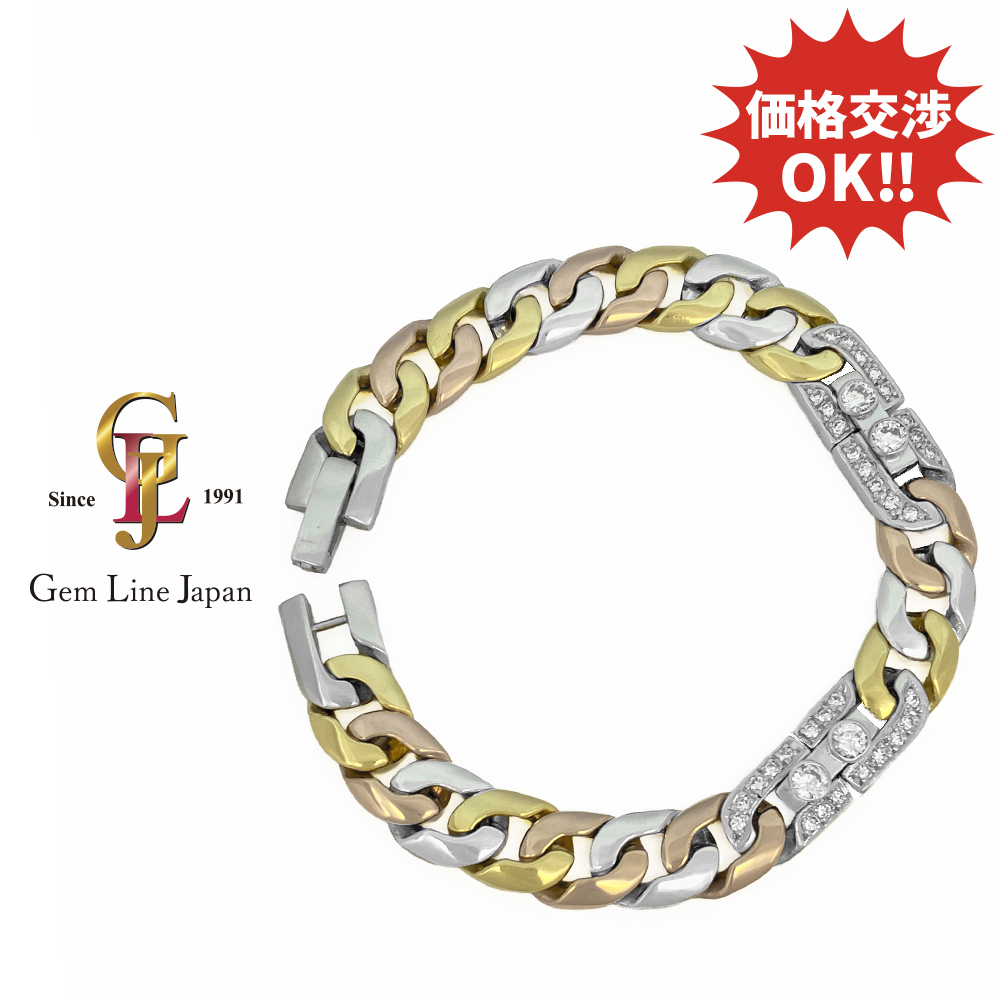 商品名 | K18 Pt850 48.21g ダイヤモンド 0.825ct/1.18ct 3色カラー メンズ ブレスレット | ||