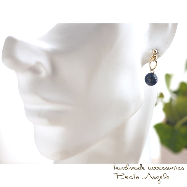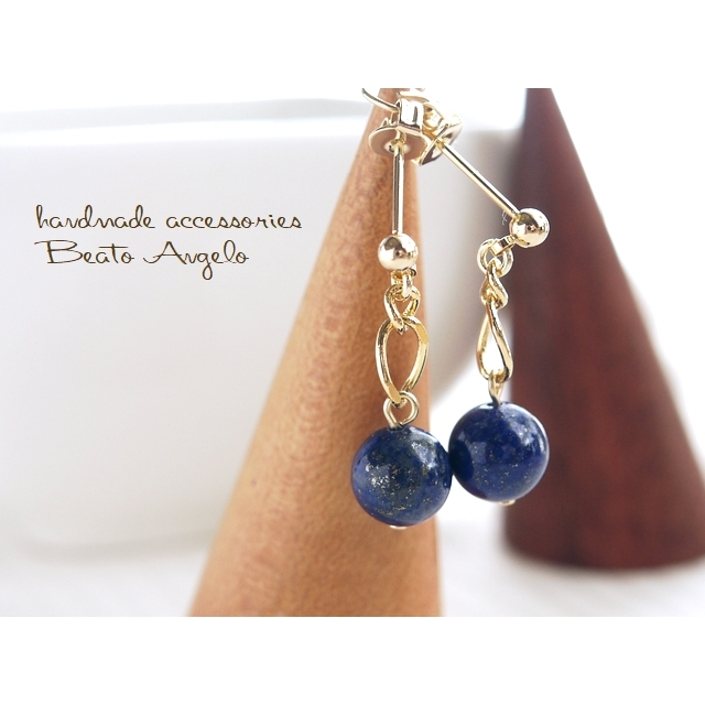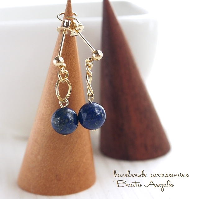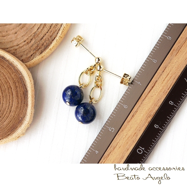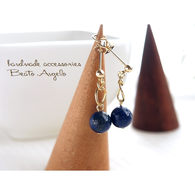 天然石ラピスラズリのチェーンピアス(p-051)G