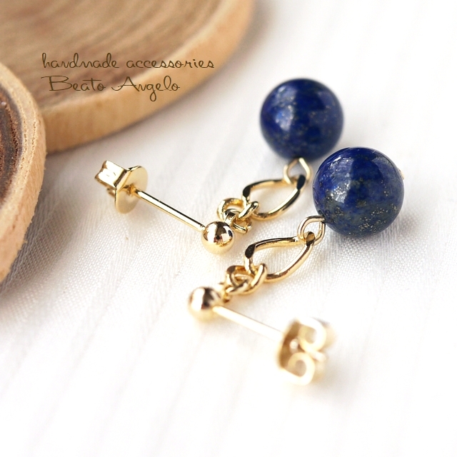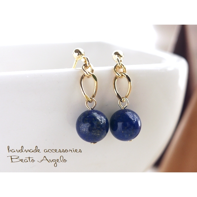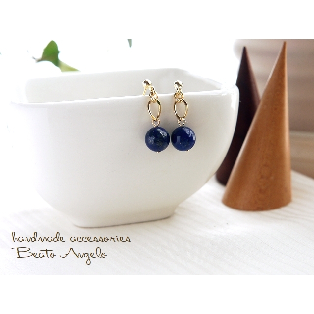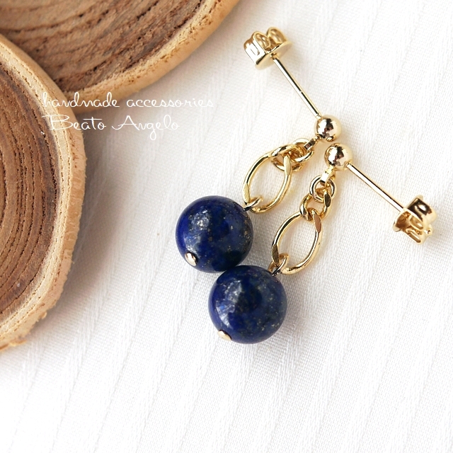 ◇◇+angelo+天然石ラピスラズリのチェーンピアス(p-051)G フィガロ 8mm ブルー ポストピアス