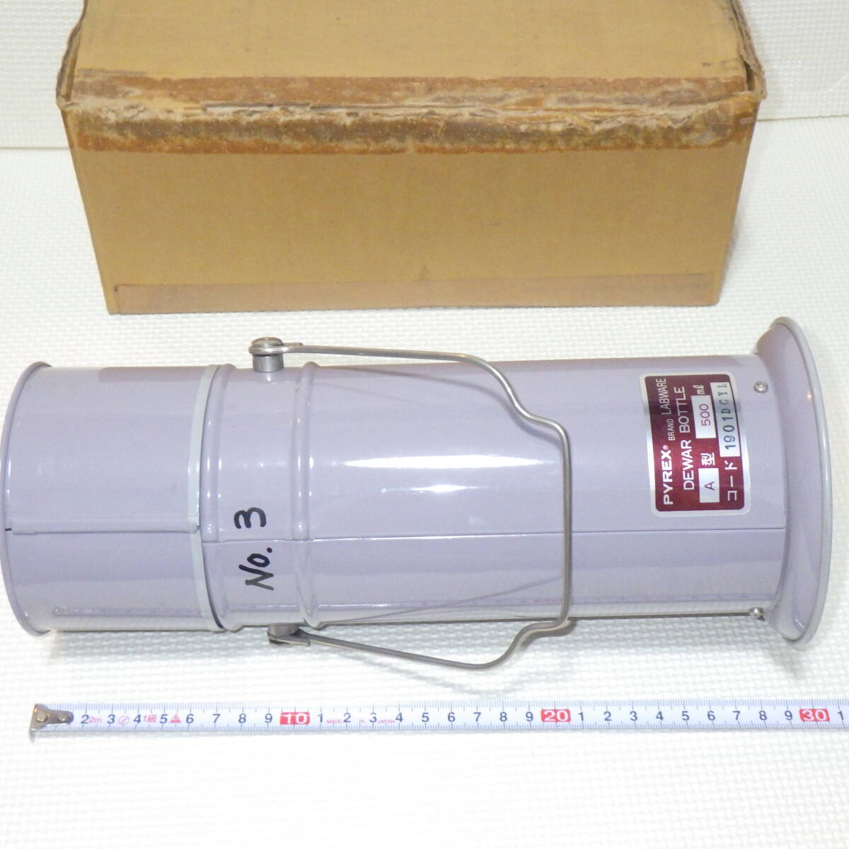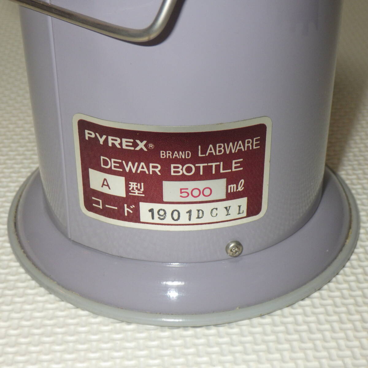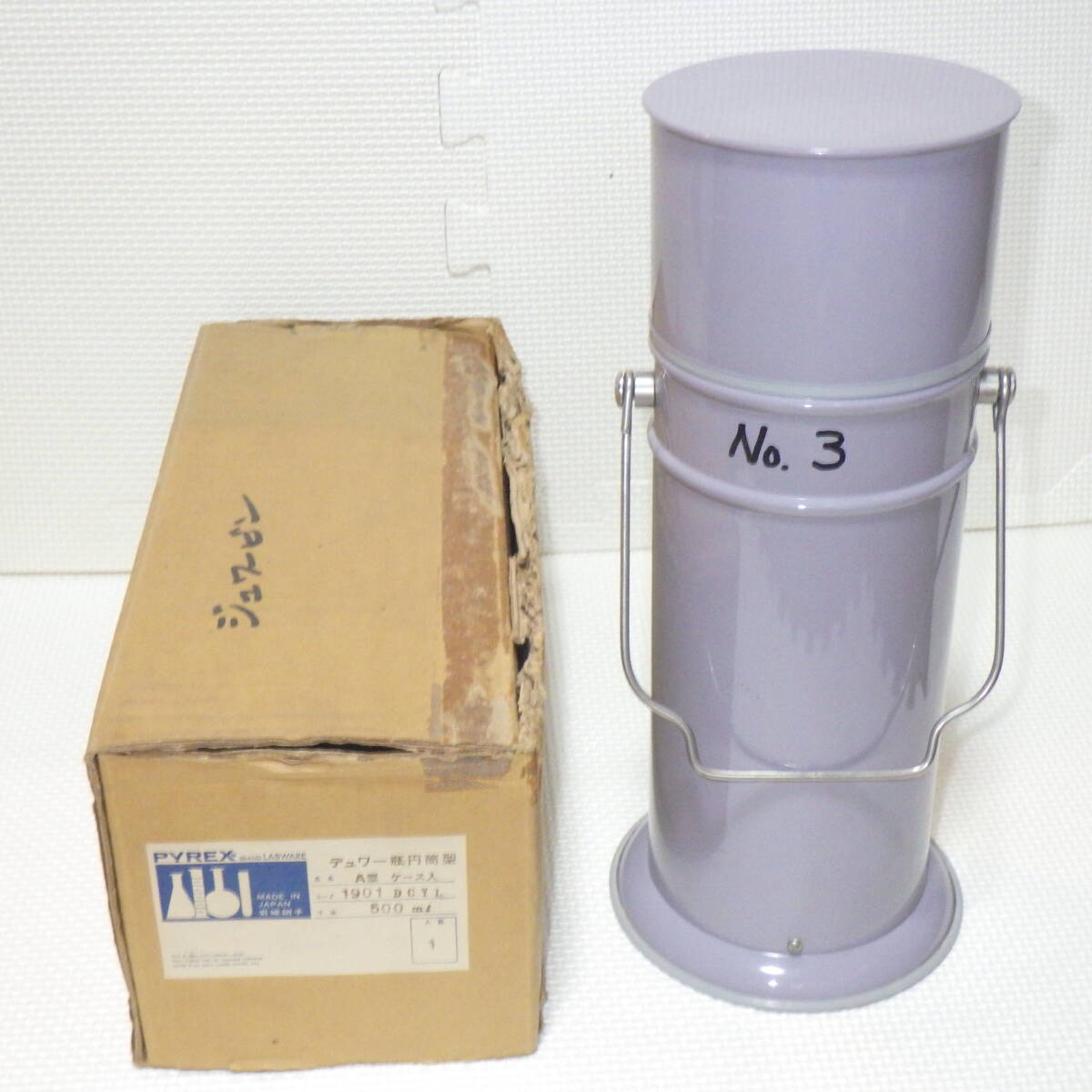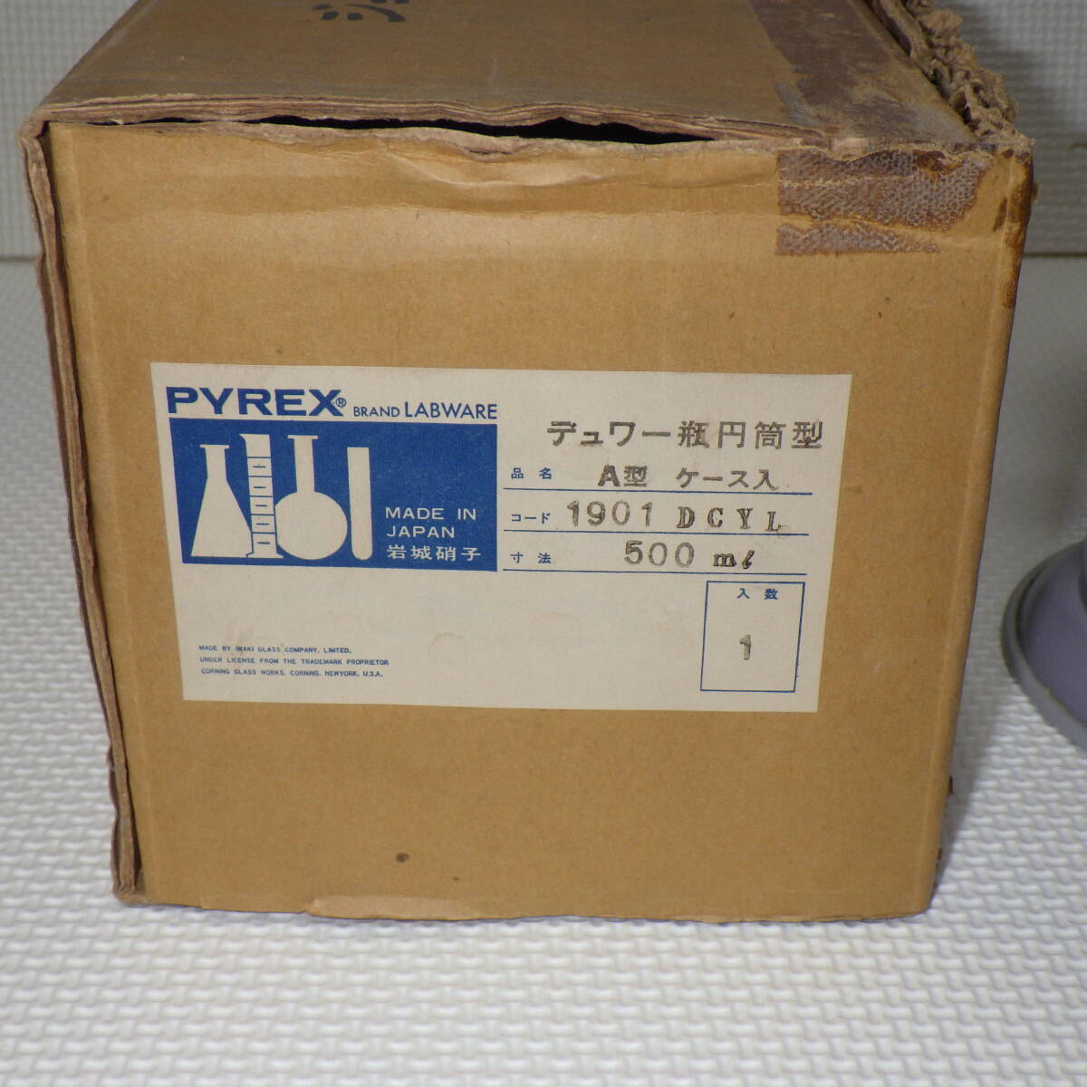 デュワー瓶③ 円筒形 A型 500ml IWAKI PYREX(岩城 パイレックスガラス 液体窒素)中古 長期休眠品 断熱性簡易確認 経年品につき現状優先で