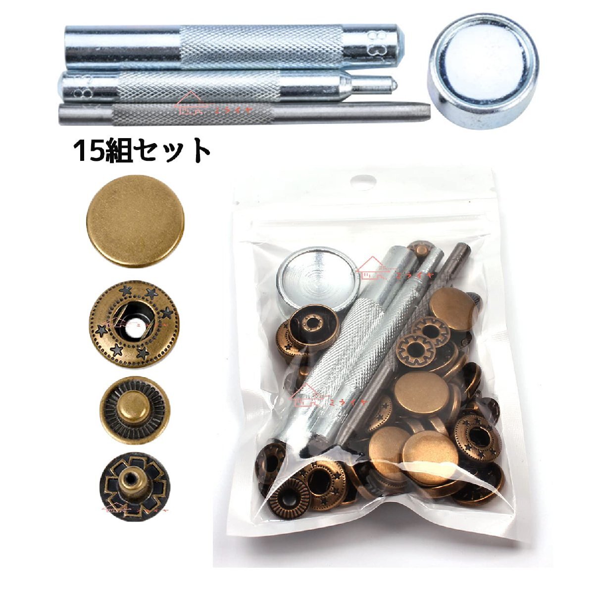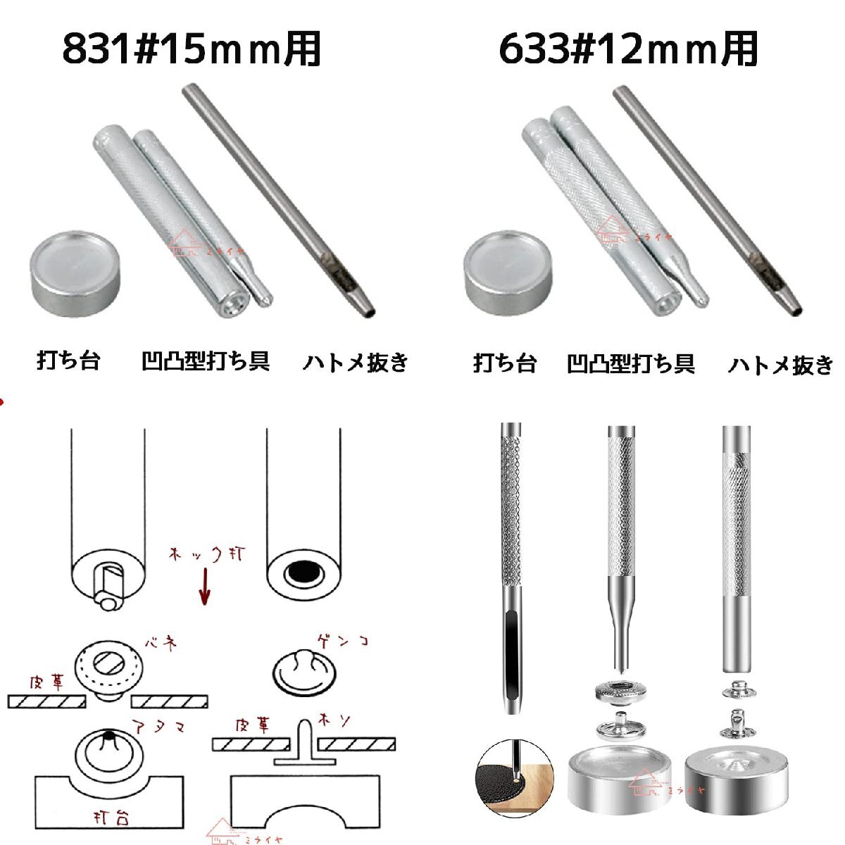 送料無料! 15組セット ハトメ抜き 打ち具 レザークラフト ボタン ミライヤ 12mm スナップ バネ 穴あけポンチ ホック打