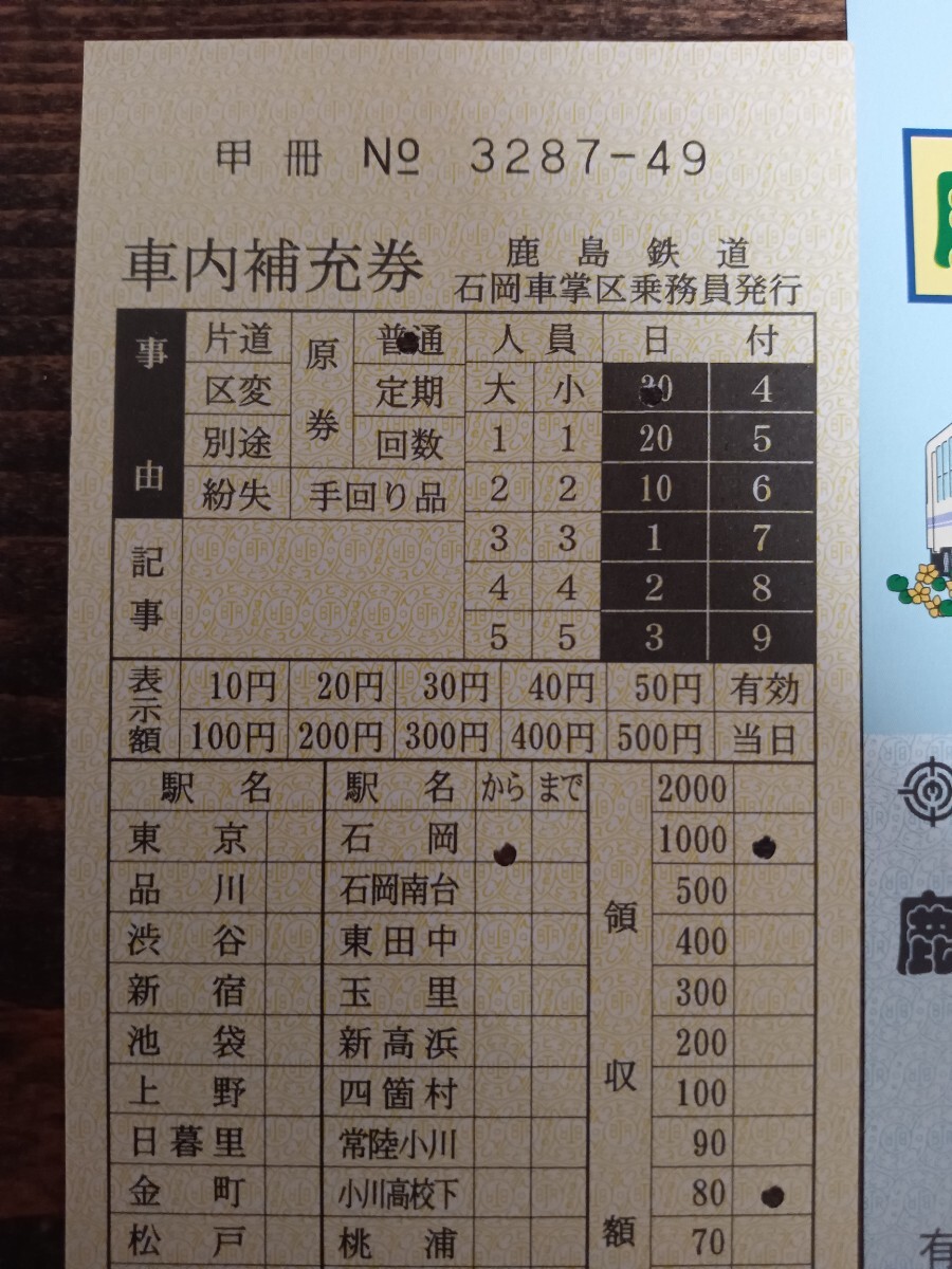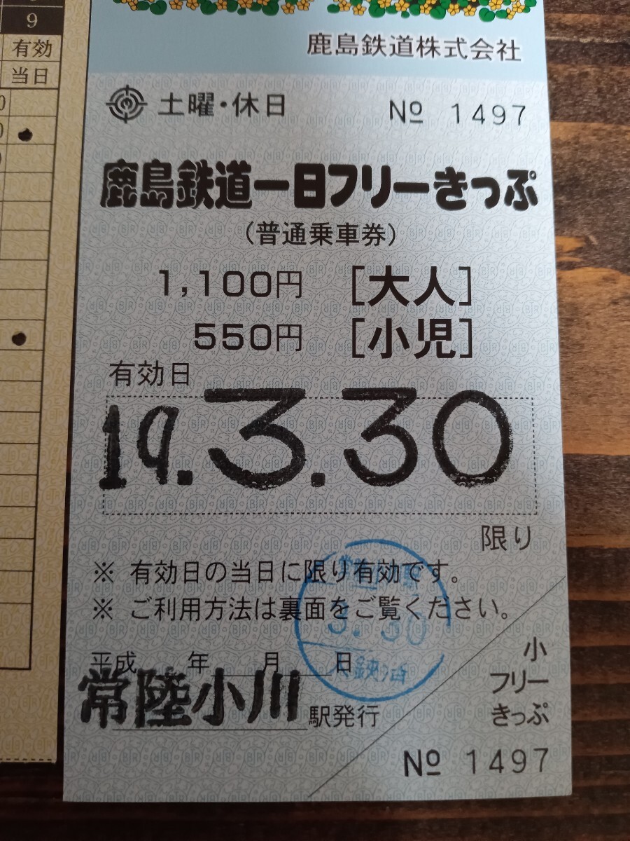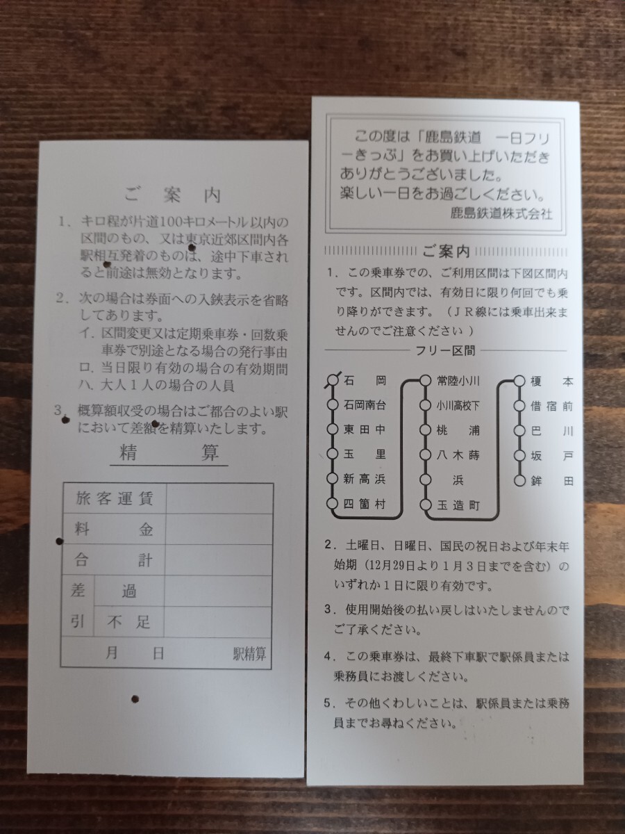 鹿島鉄道 車内補充券 石岡車掌区乗務員発行 鹿島鉄道の旅 フリーきっぷ 石岡駅 鉾田駅 常陸小川駅(軟券 乗車券 鉄道コレクション)