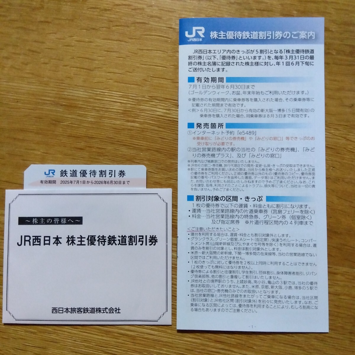 JR西日本株主優待1枚のみの出品です。