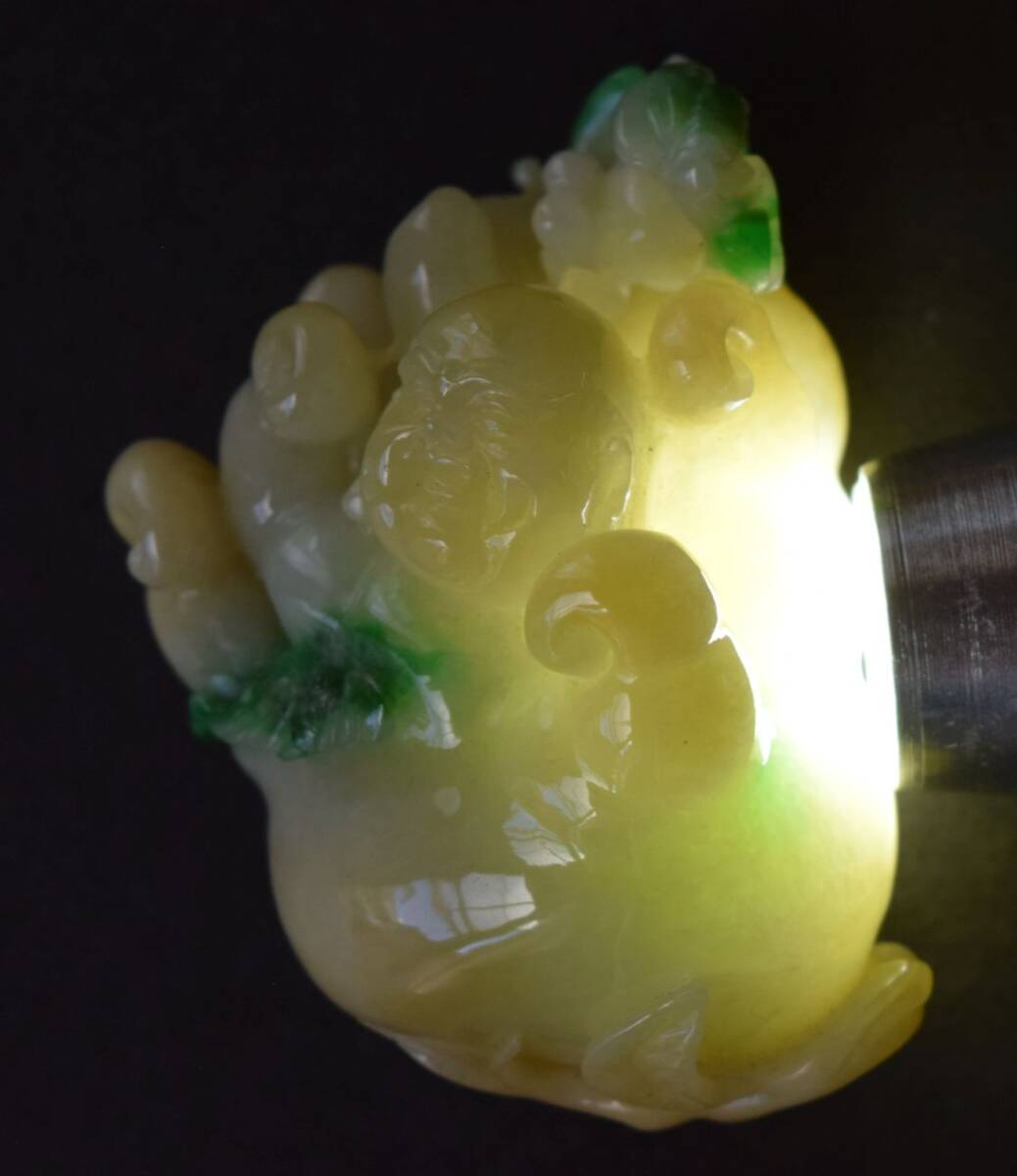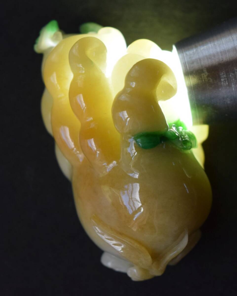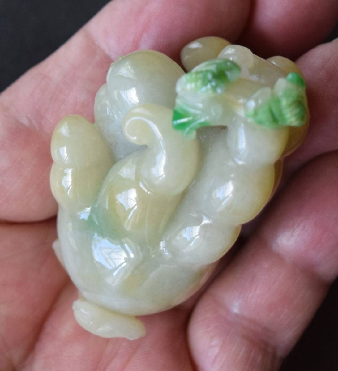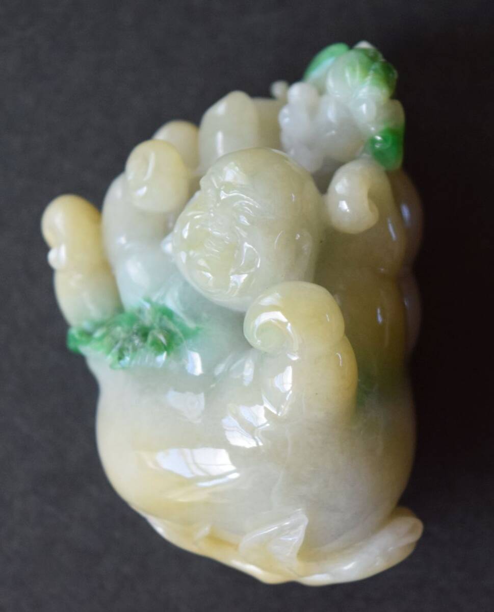 1.天然石卸、超激レア、完全別格品、翡翠布袋様彫物、イエローにグリーンが映えて見映えもよく握り石にも。