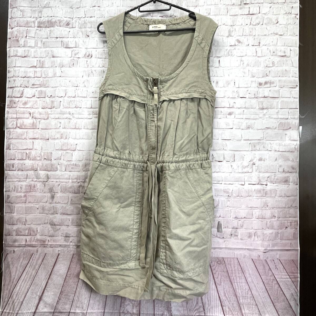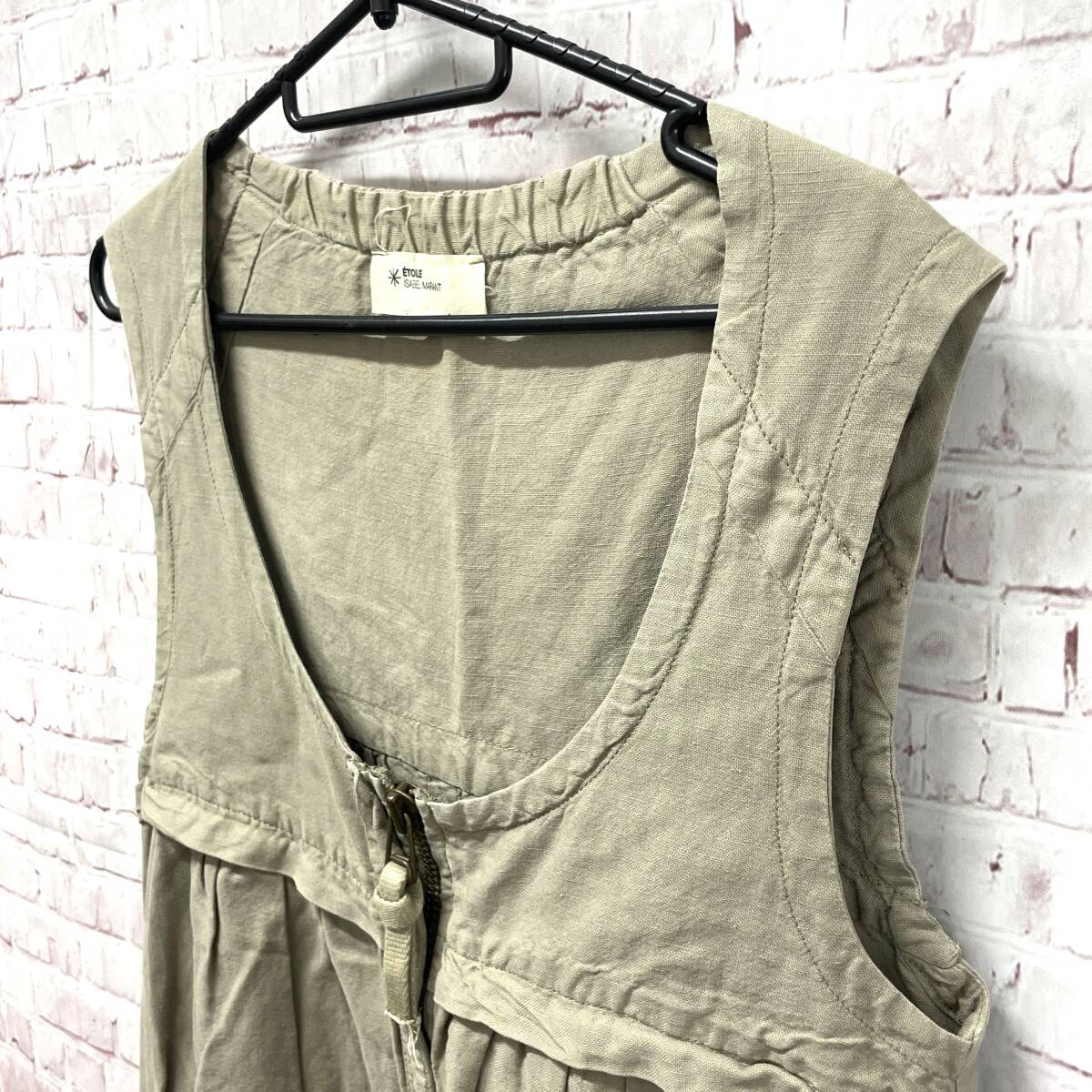 Isabel Marant Etoile イザベル マラン エトワール ノースリーブ ワンピース ラウンドネック カーキ系 無地 コットン リネン ポケット×3