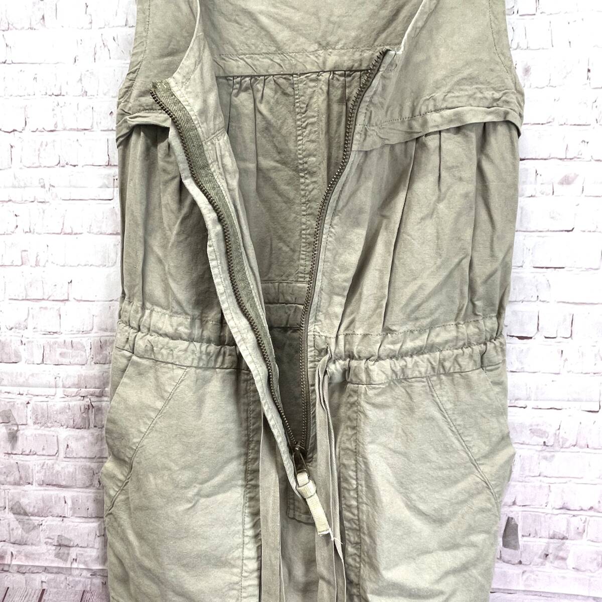 外側:畳ジワ 全体擦れ(小) 背面首周り・裾など変色(小) ファスナー引手・ウエストリボン数ヵ所保管ジミ(中) 全体保管ジミ(小)