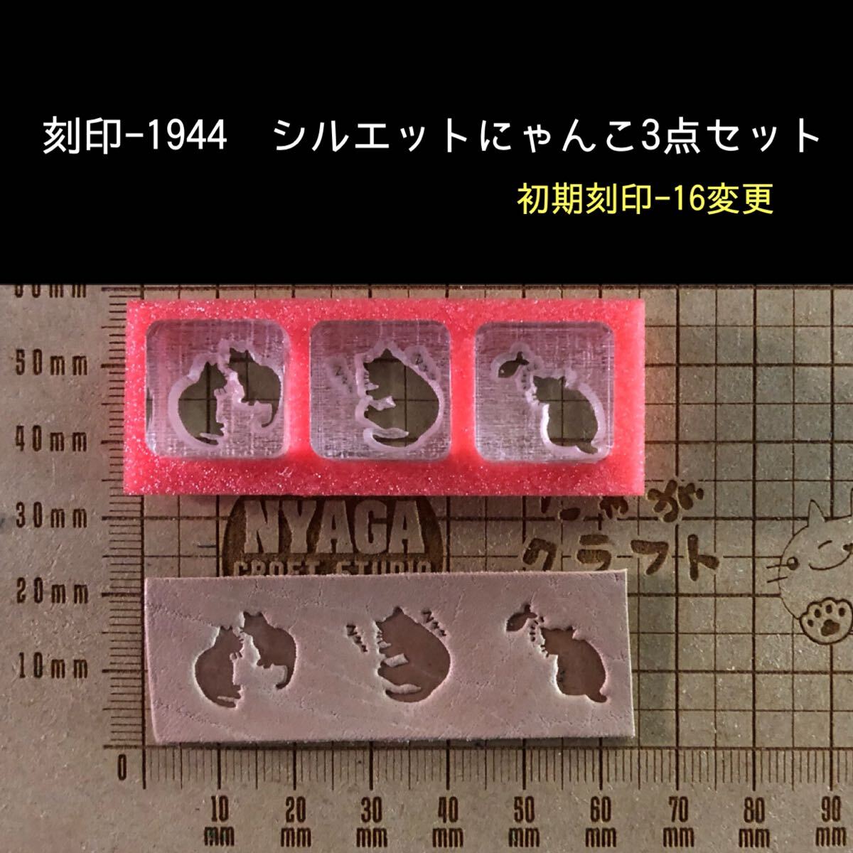 刻印-1944 シルエットにゃんこ 動物刻印 アクリル刻印 ハンドクラフト レザークラフト 革タグ スタンプ