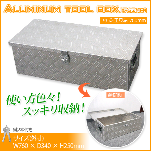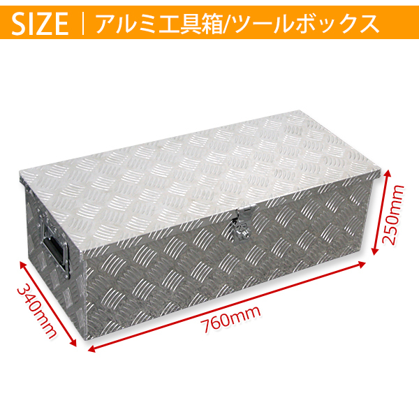 | 商品の詳細 | 高い耐久性をもつ頑丈なアルミチェッカー製ツールボックスです。 大切な工具や道具、電動器具を安心して保管できます。 持ち運びに便利な取っ手が両側に付いています。 大型なので大きな工具を入れるのにも便利! 鍵付きだから盗難の心配もないため、屋外に置いても安心です。 寸法: 約 幅 760× 奥行 340 × 高さ 250 (mm) 重量: 約 5.6 kg 材質: アルミ セット内容:本体、カギ×2 | |