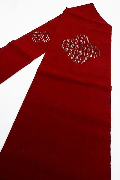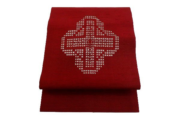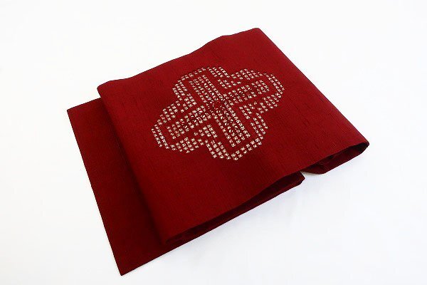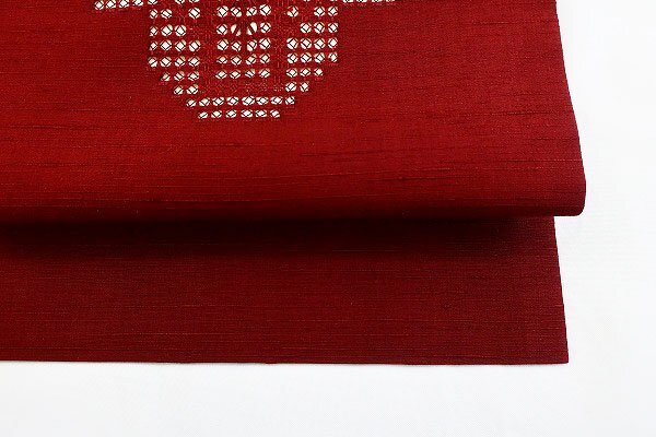 | 未使用品 名古屋帯 栗色 十字文様 ドロンワーク 紬地 長さ3m66cm カジュアル お洒落 正絹 着物フィ m-8052 |