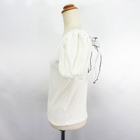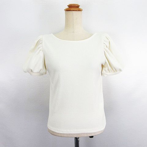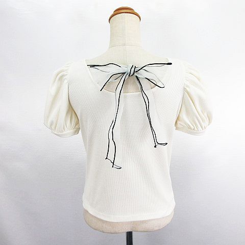 イング INGNI ニット カットソー 半袖 パフスリーブ バックリボン リブ ストレッチ M アイボリー ※EKM レディース