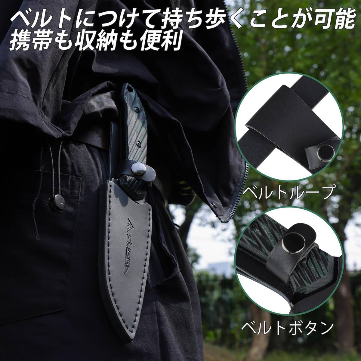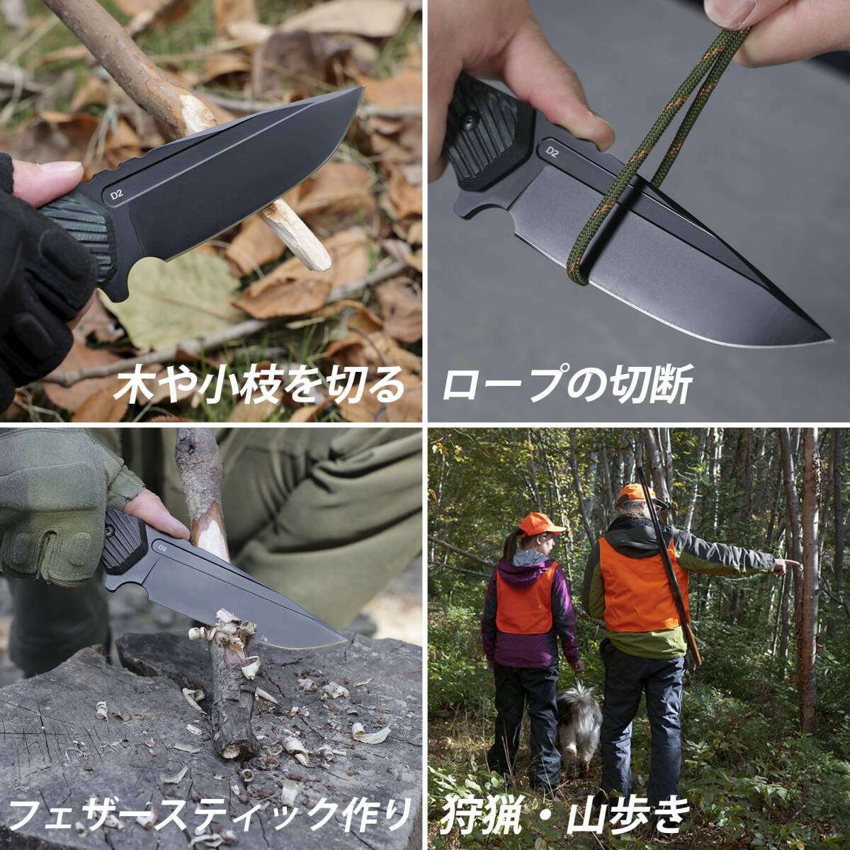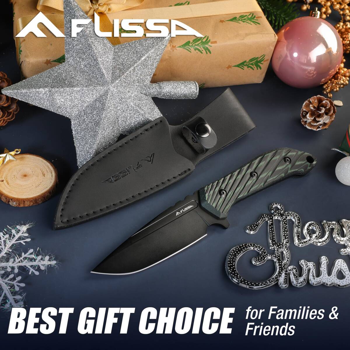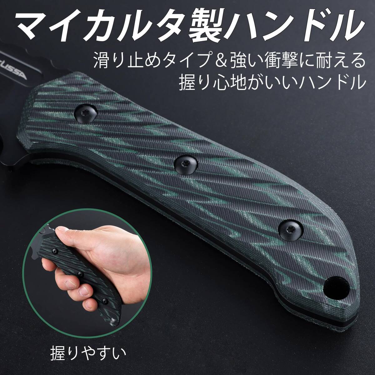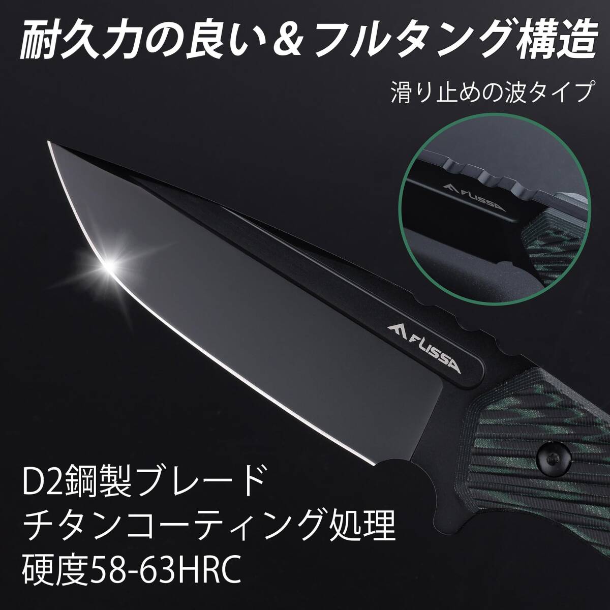 FLISSA アウトドアナイフ シースナイフ フルタング構造 D2鋼ブレード マイカルタハンドル 登山 キャンプ トレッキング