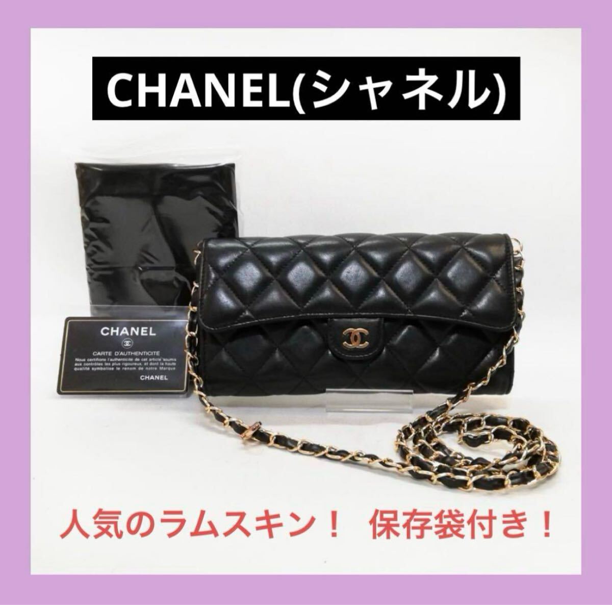 シャネルの象徴であるラムスキンマトラッセの贅沢で高級感溢れる触り心地な長財布に、フェルト製差し込み型のチェーンショルダー(社外品)をつけて斜め掛けOK!長さ調整可能でショルダーバッグ、ワンショルダー、長財布としてご利用可能。