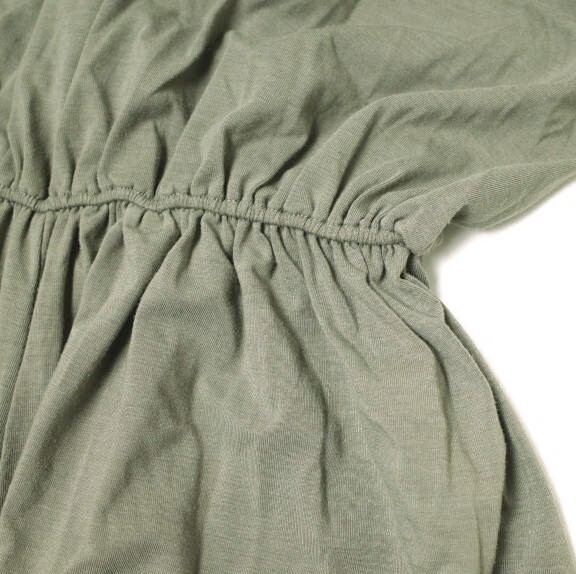 ウエストにはたっぷりとギャザーを、ボトム部分はバギーシルエットに仕立てています。