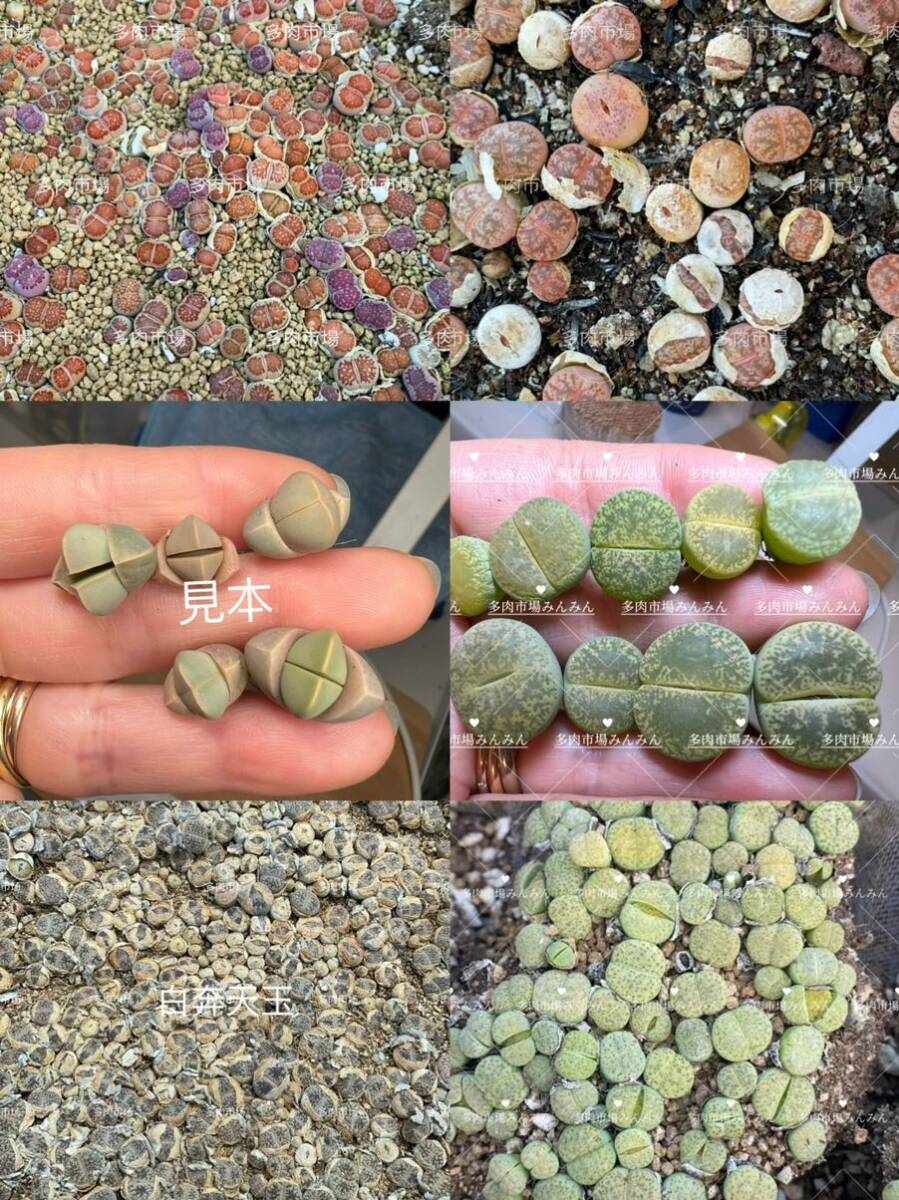 例えば:白弁天玉3苗 魔玉5苗 菊紋章3苗 微紋玉5苗 彩研玉 (粉顔玉)2苗 組み合わせで18苗