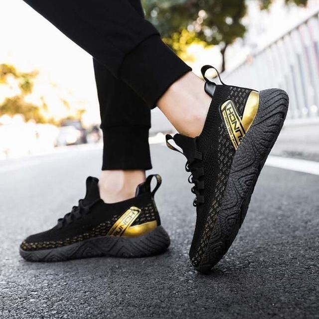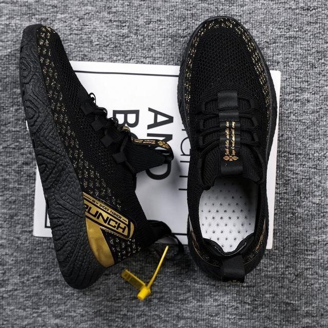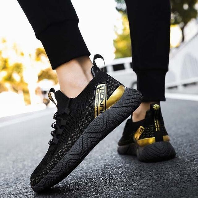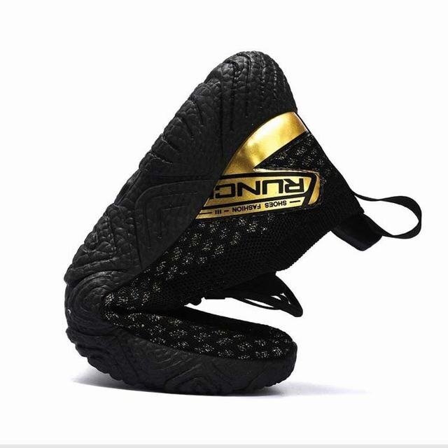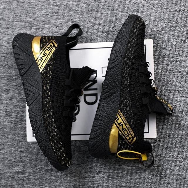 ランニングシューズ メンズ メンズシューズ メッシュ メンズスニーカー 防滑ソール 幅広 運動靴 春秋 軽量 ブラック&ゴールド26cm