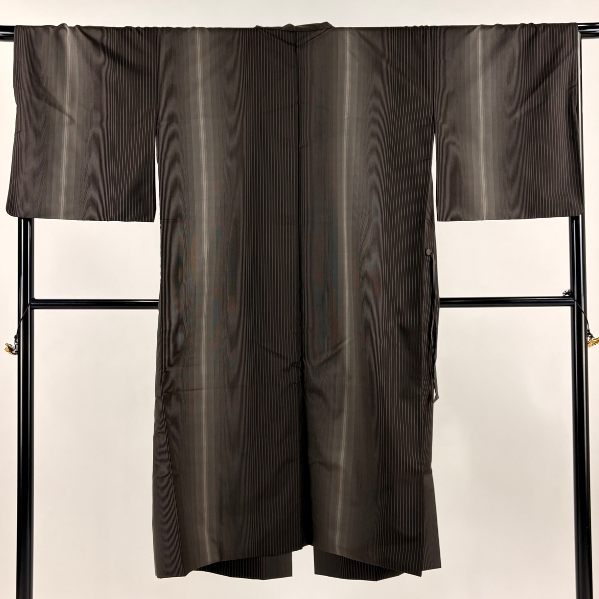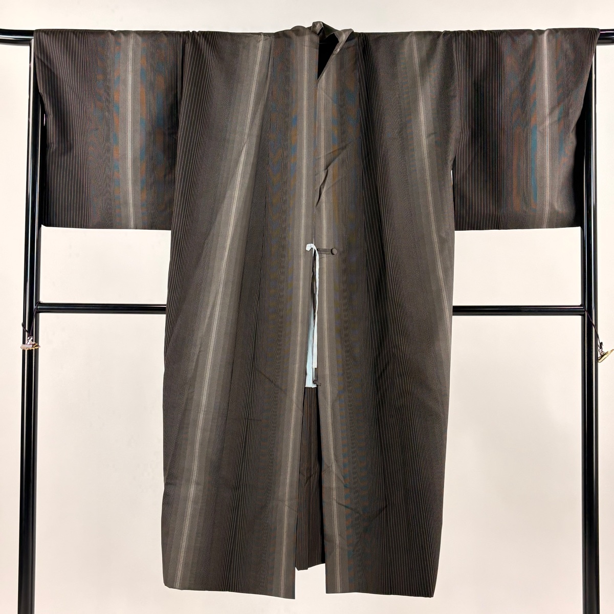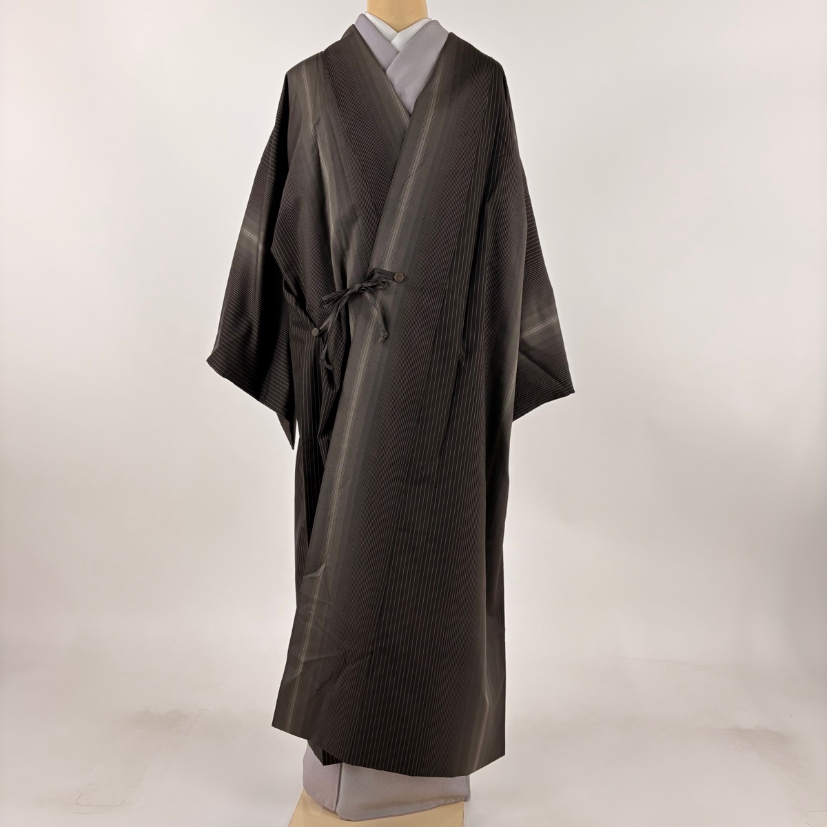 | 道中着 美品 逸品 和装コート 紬地 縦縞 焦茶色 身丈129 裄丈68 L 正絹 【中古】 |