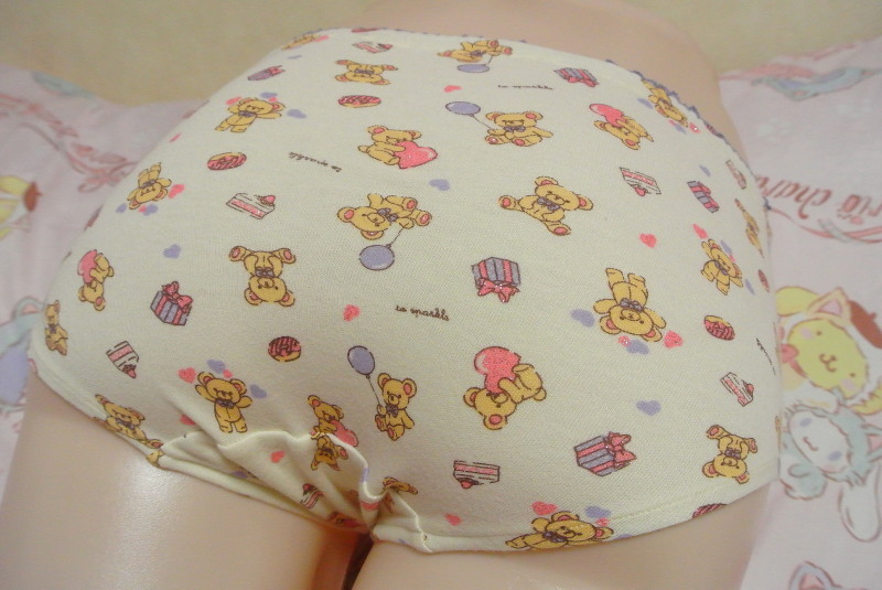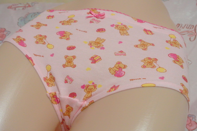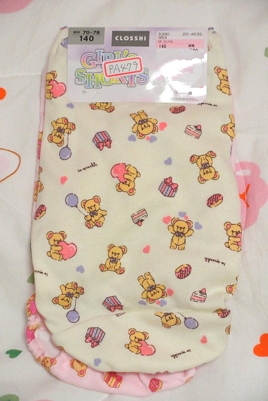 PA479 140だけど大人もはける クマと小物の総柄の女児用ショーツ2枚組 ピンク・クリーム 140サイズ 新品