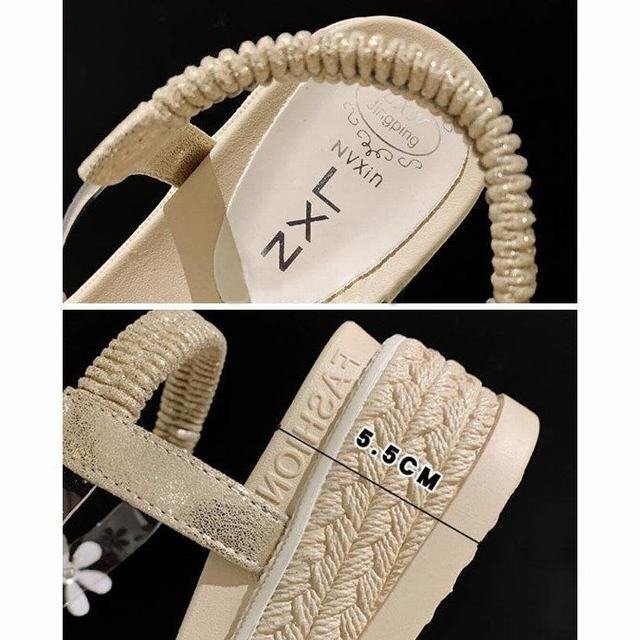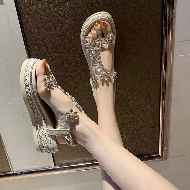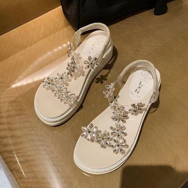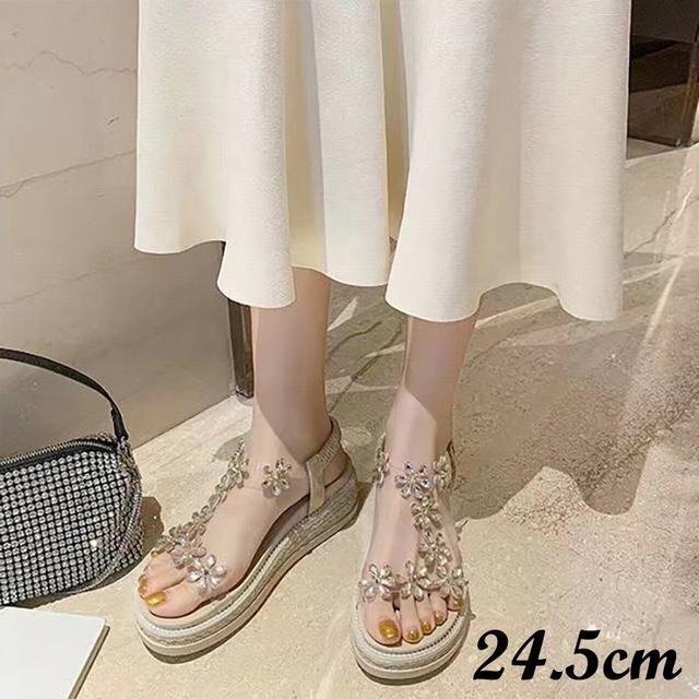 サンダル 厚底 レディース ウェッジソールサンダル 花柄 サマーサンダル 厚底サンダル 美脚 ダイヤ 靴 ウェッジソール ベージュ24.5cm
