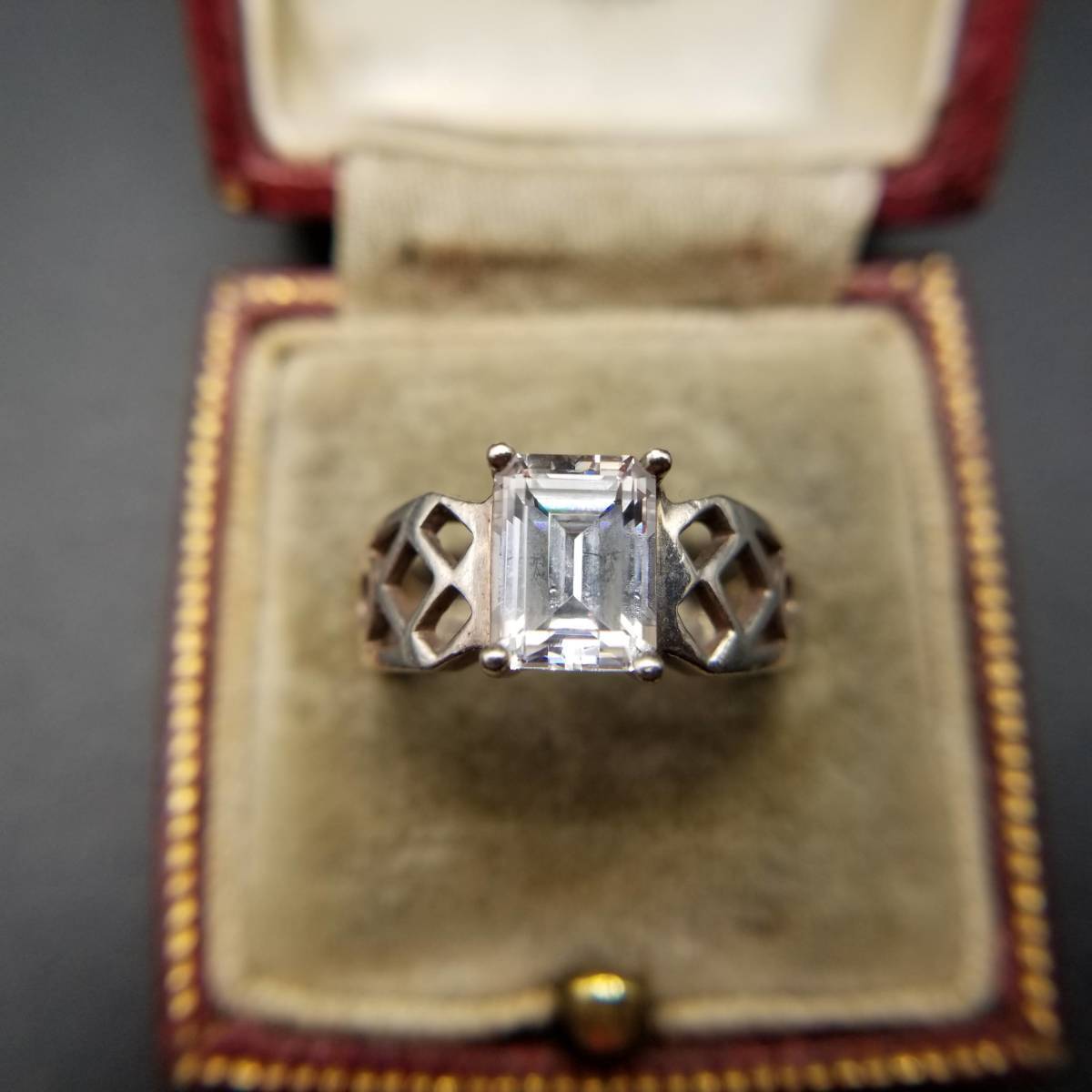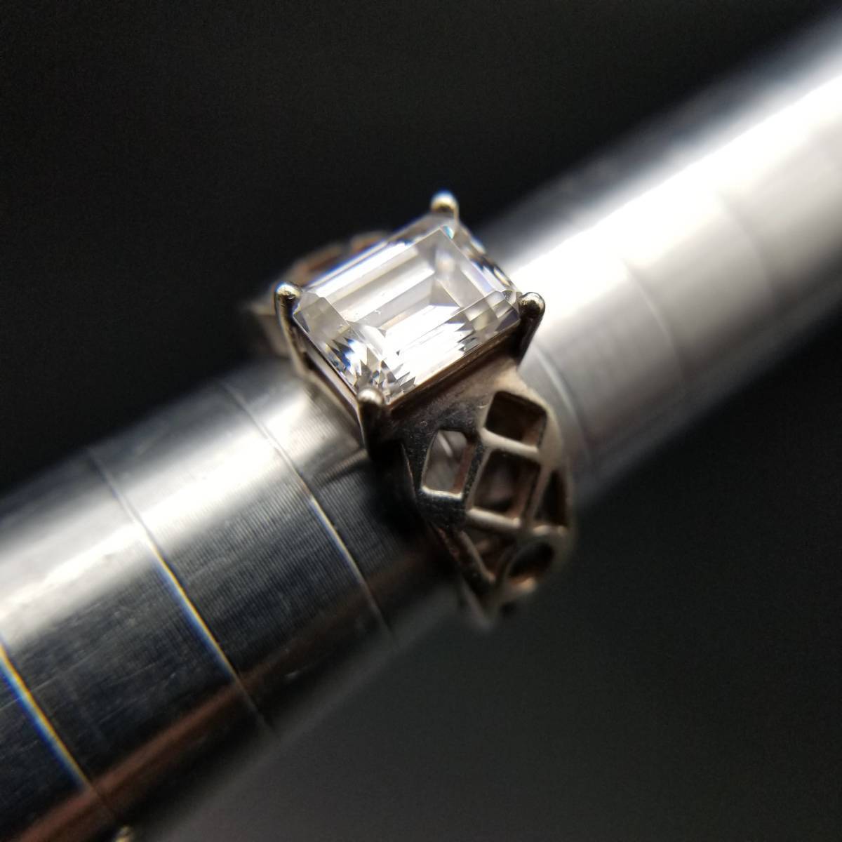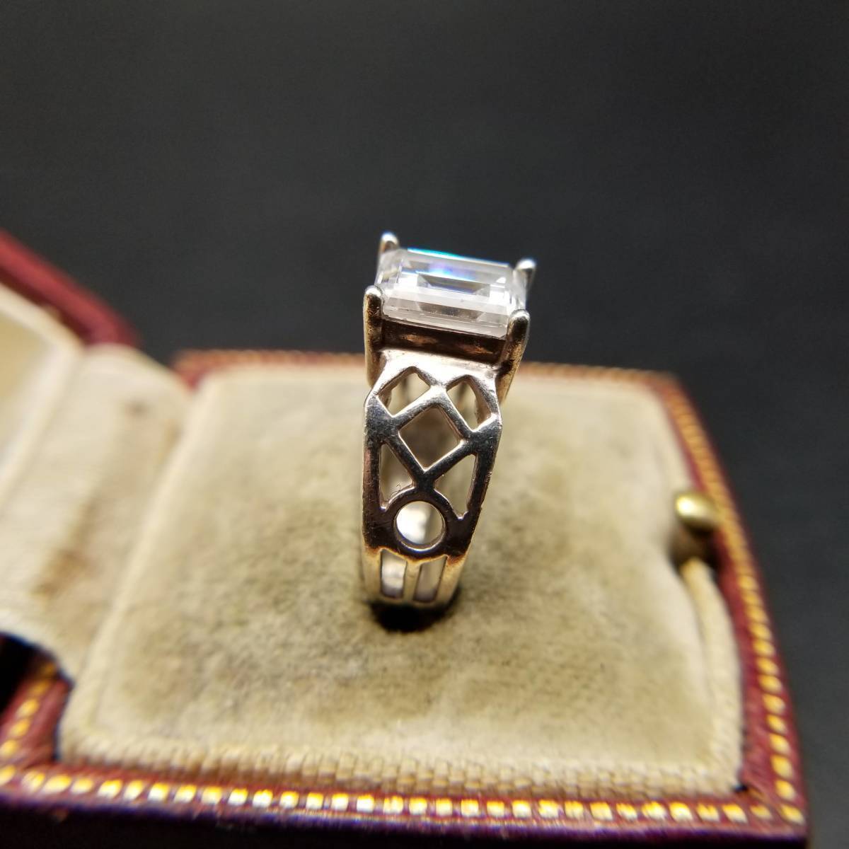 キュービックジルコニア エメラルドカット 925シルバー アールデコ ヴィンテージ リング 銀 指輪 ビンテージ アクセサリー 透かし ネット YMF4