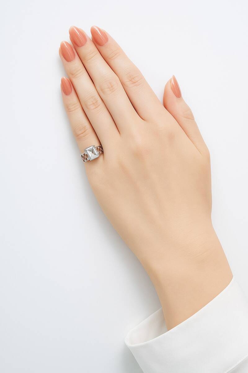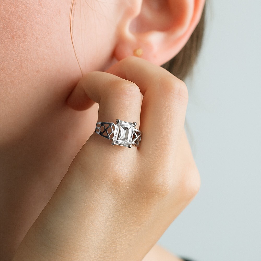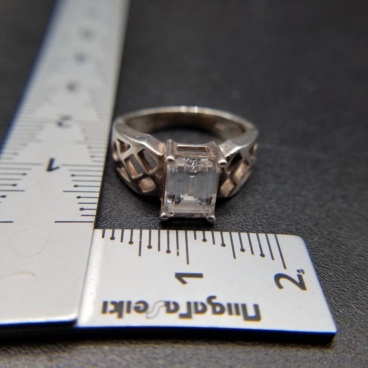 キュービックジルコニア エメラルドカット 925シルバー アールデコ ヴィンテージ リング 銀 指輪 ビンテージ アクセサリー 透かし ネット YMF4