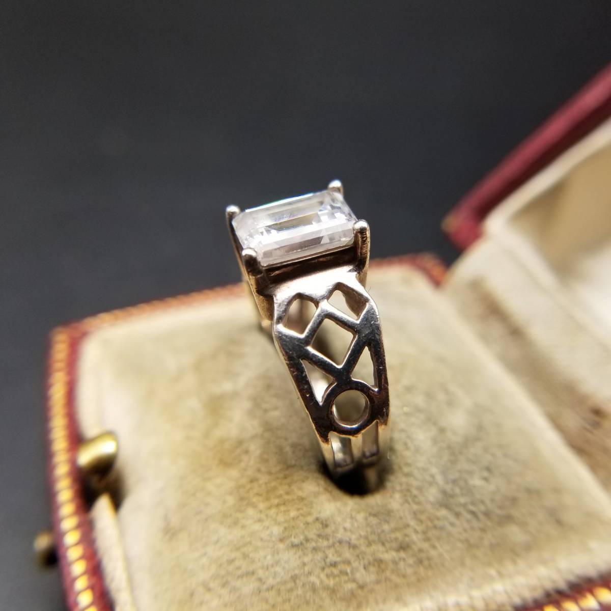 キュービックジルコニア エメラルドカット 925シルバー アールデコ ヴィンテージ リング 銀 指輪 ビンテージ アクセサリー 透かし YMF4