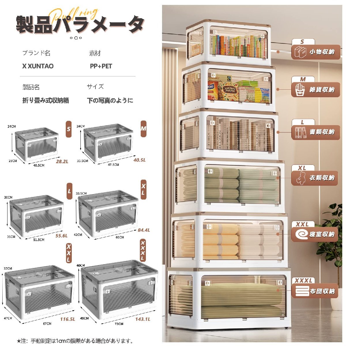 ブランド:XXUNTAOカラー:ホワイトサイズ:Sサイズ【折り畳み上に蓋/側面扉付き】収納箱界の大革新!使わない時に折りたたんで収納できます。スペースを取りません。側面四面も扉付き、収納にとても便利です。上にふた付き、物を入れやすい。蓋をロックできます。物を取るは側面扉から、ボックスを積み重ねる状態にも楽に物を取り出して、伝統的な収納ボックスに比べてもっと便利で、機能性が向上します。