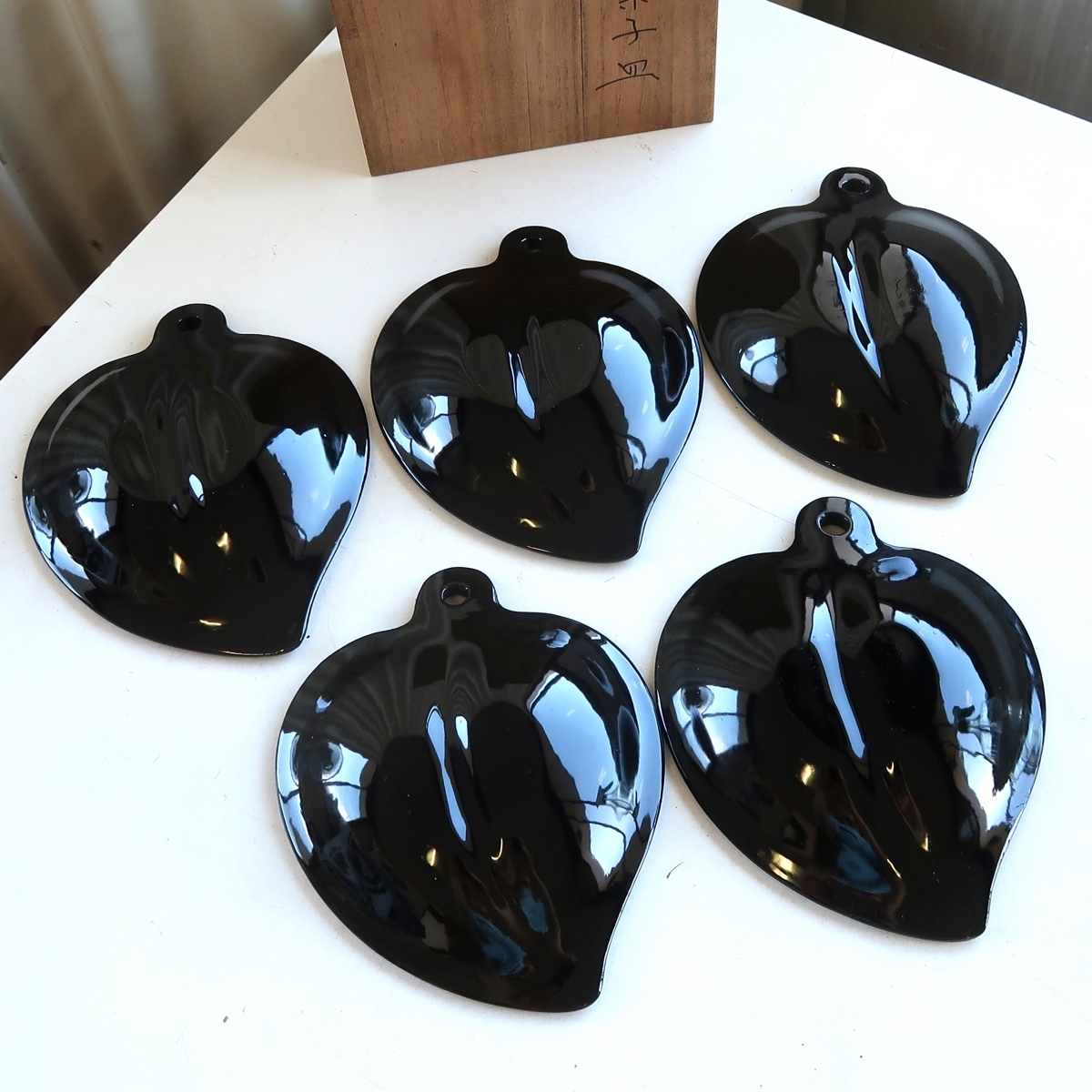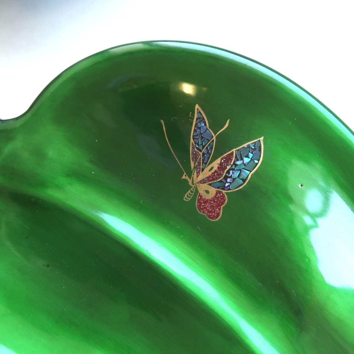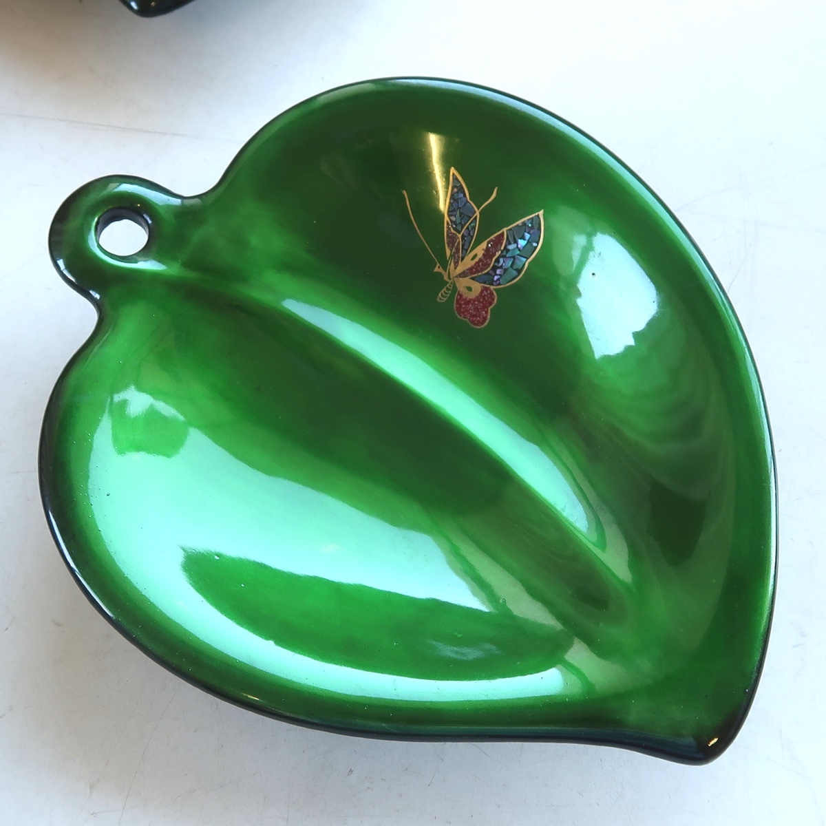 七宝焼 菓子器 銘々皿 葉っぱ型 葉型 蝶螺鈿 5枚セット 美品 長期保管品です。