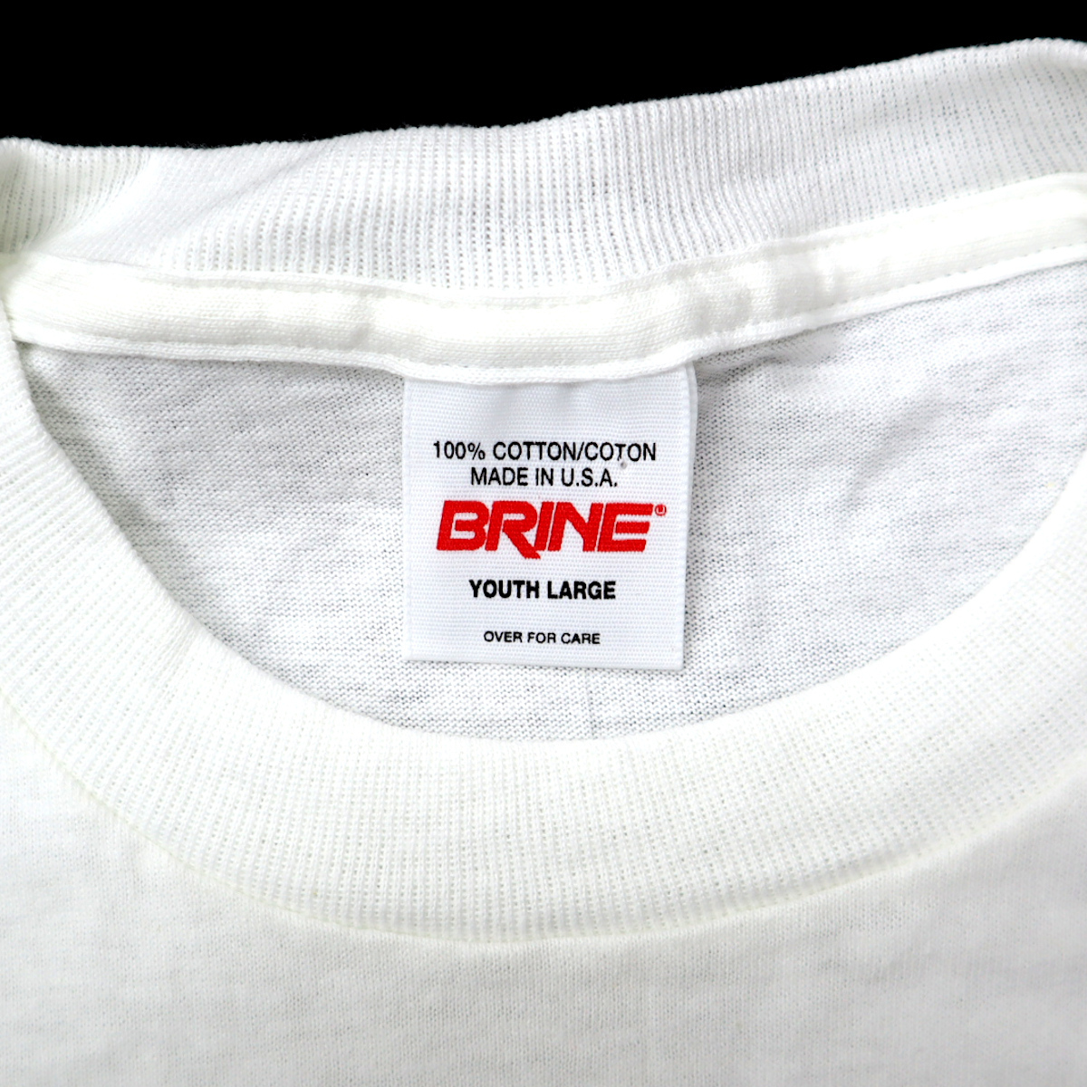 BRINEのTシャツです。USA製で1990年代のデッドストックです。素材はコットン、しっかりとした生地が使用されています。ユースサイズですが、メンズやレディースとしても着用できるサイズ感です。在庫の残りも少なくなっていますので、買える内に是非ご検討下さい。